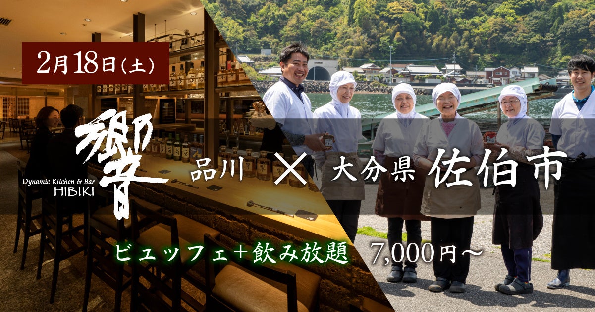 株式会社ダイナックホールディングスの子会社である株式会社ダイナック(本社:東京都港区 代表取締役社長:秋山武史)が運営する『Dynamic Kitchen & Bar 響』の首都圏全店で「響の地方応援プロジェクト第2弾」として大分県佐伯市の名産品を使った料理を2月15日(水)より販売。品川店では2月18日(土)のディナータイム限定でビュッフェ形式で料理を愉しんでいただくイベントを開催します。