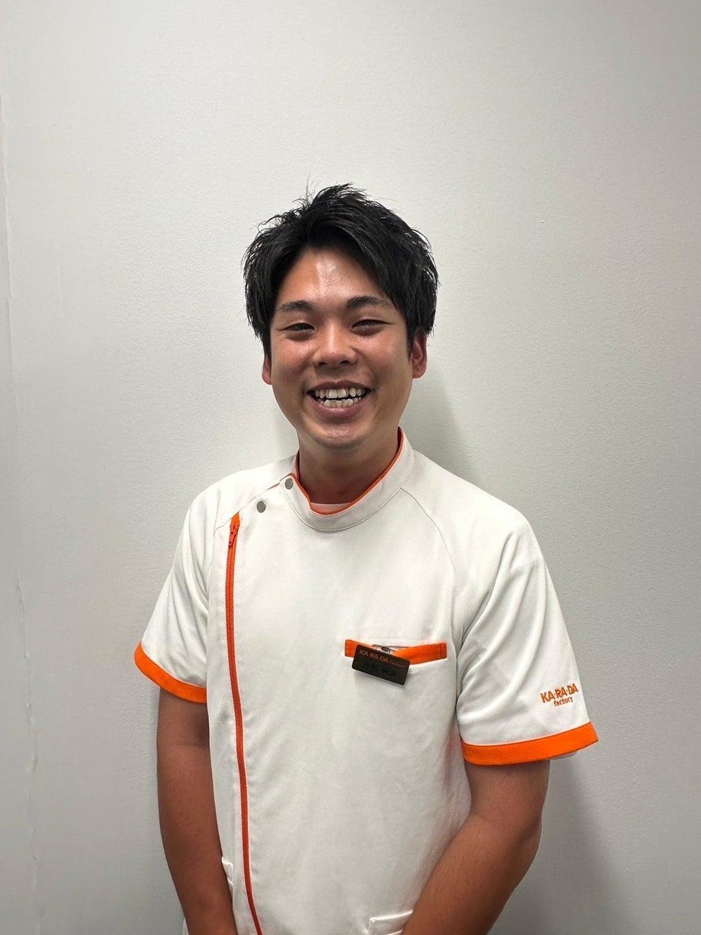 2014年4月、新卒でFJG入社。カラダファクトリーグンゼタウンセンターつかしん店、同せんちゅうパル店を経て2018年7月末に退職。その後、2020年2月ウエルカムカムバック制度を利用し2020年1月に再入社。カラダファクトリーせんちゅうパル店、2022年1月より同ソリオ宝塚店店長を経て、2024年1月より技術教育部着任(現任)。