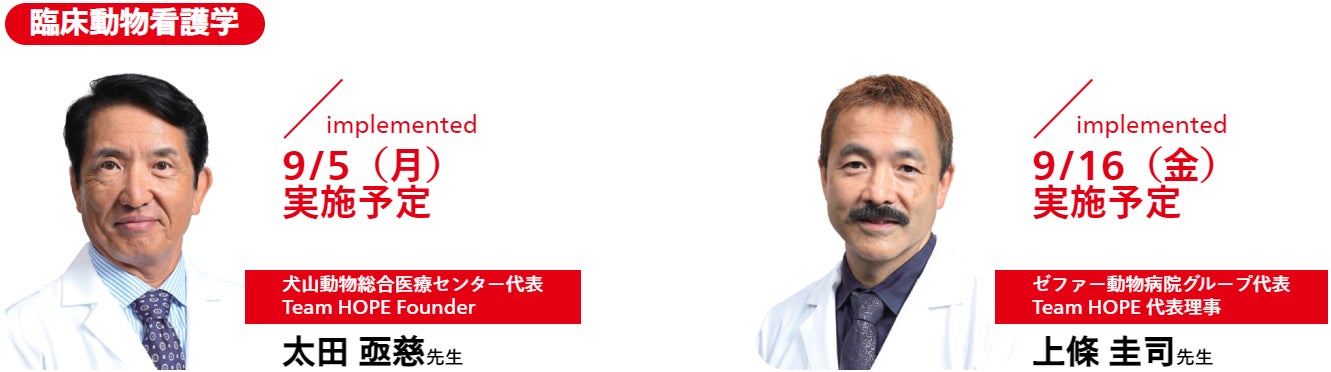 試験そのものに慣れていただくために、愛玩動物看護師カリキュラムや統一認定試験(主催:一般財団法人動物看護師統一認定機構)の過去問題を参考とした、ロイヤルカナン監修の模試100問を新たに作成しました。さらに、現職の動物看護系大学・専門学校教員や臨床獣医師を講師にお迎えし、周辺知識を含んだ模試の解説講座を、合計6回にわたりLIVEでお届けします。すべてオンライン開催のため、ご自身の都合の良い時間に勉強ができ、試験対策にお役立ていただけます。