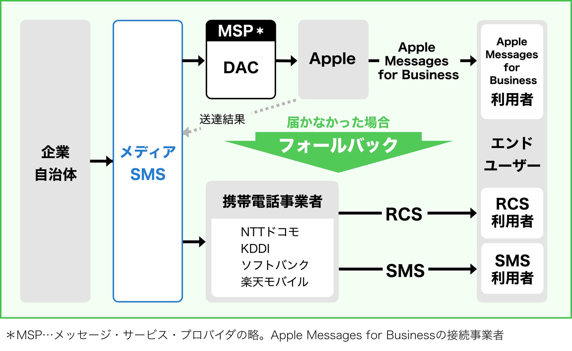 | DAC | メッセージ・サービス・プロバイダ(Appleとの窓口)/販売 |