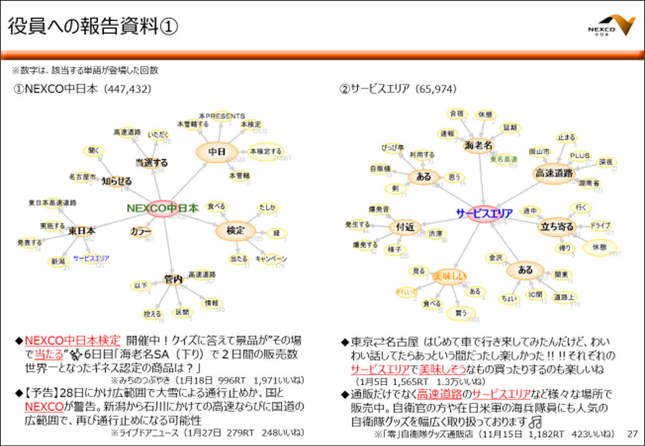 今回はその中で、お客さま応対の記録を全社員が即時閲覧できる仕組みや、SNSで拡散している高速道路に関係する投稿を自動で抽出・集計する仕組みなどが評価の対象となりました。
