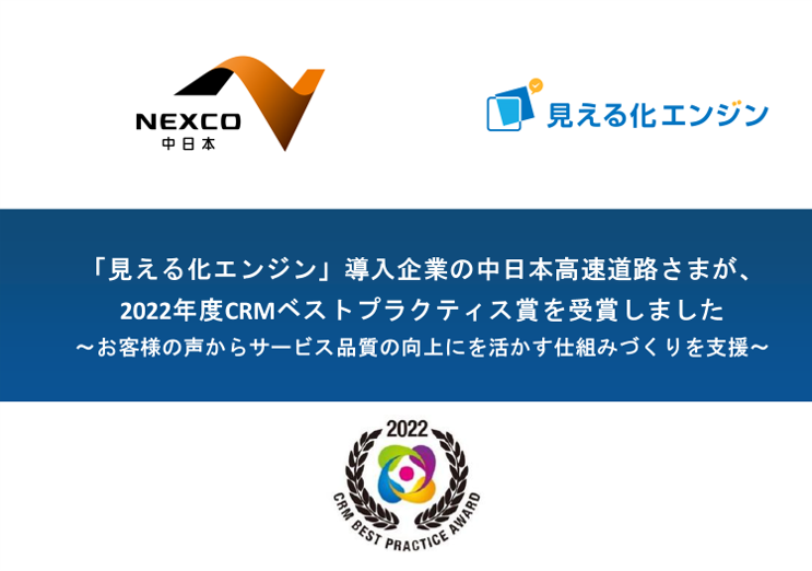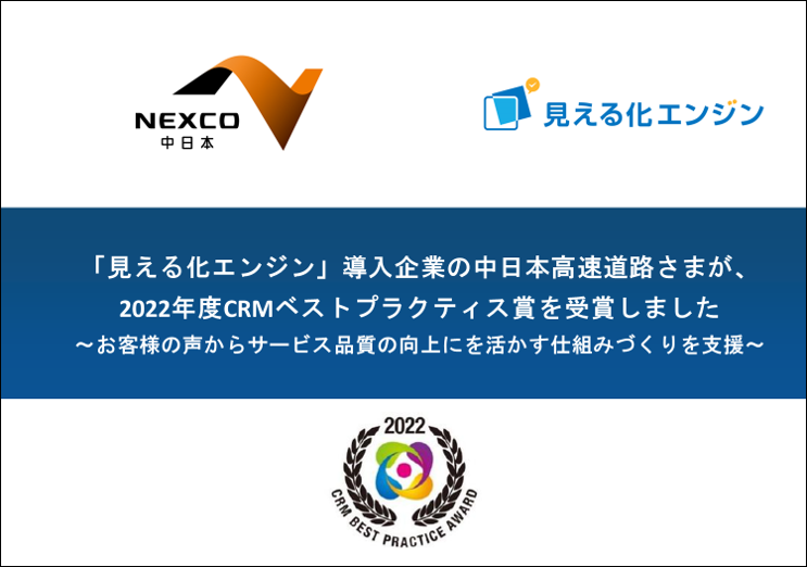 「見える化エンジン」導入企業の中日本高速道路株式会社が、2022年度CRMベストプラクティス賞を受賞しました