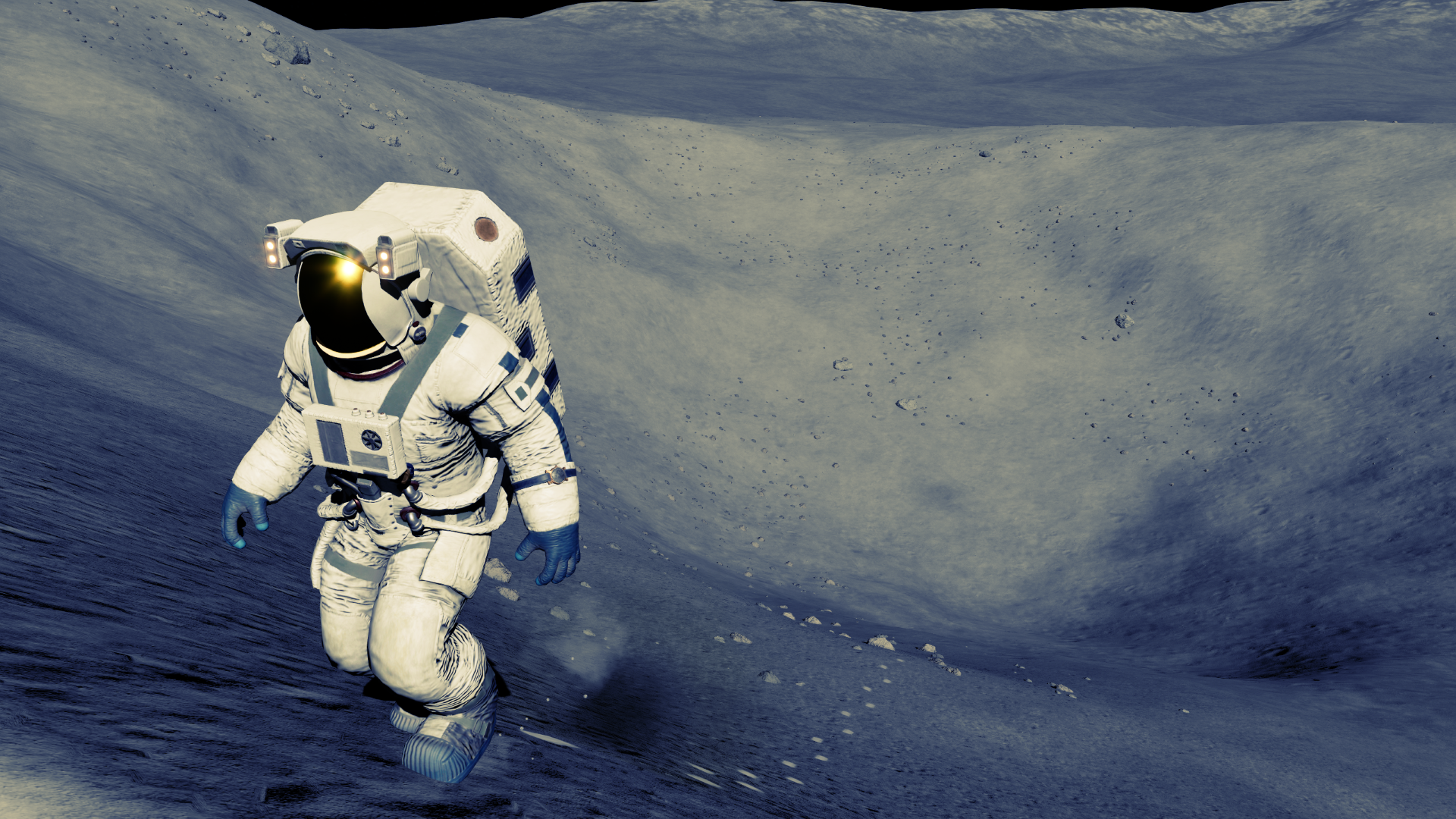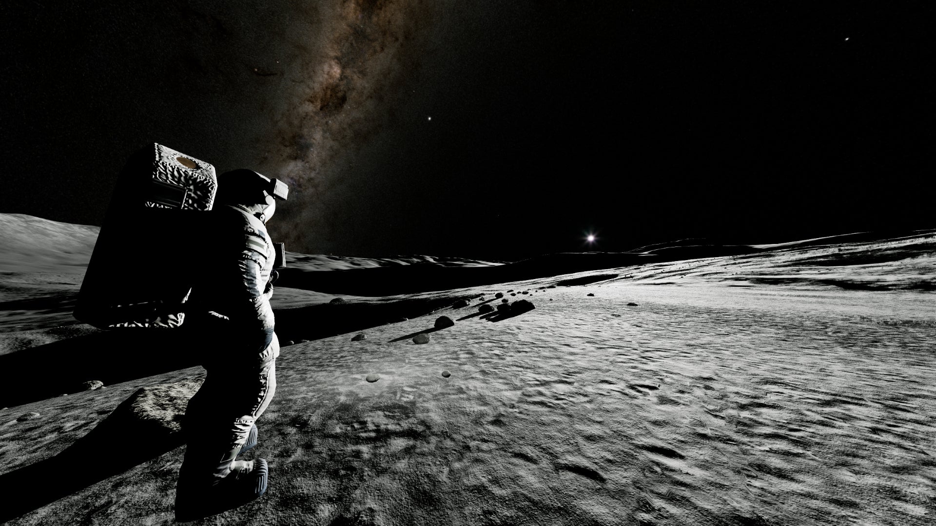 プレイヤーは、歩行やローバー操作を通して本物さながらの月面探索を体験できます。