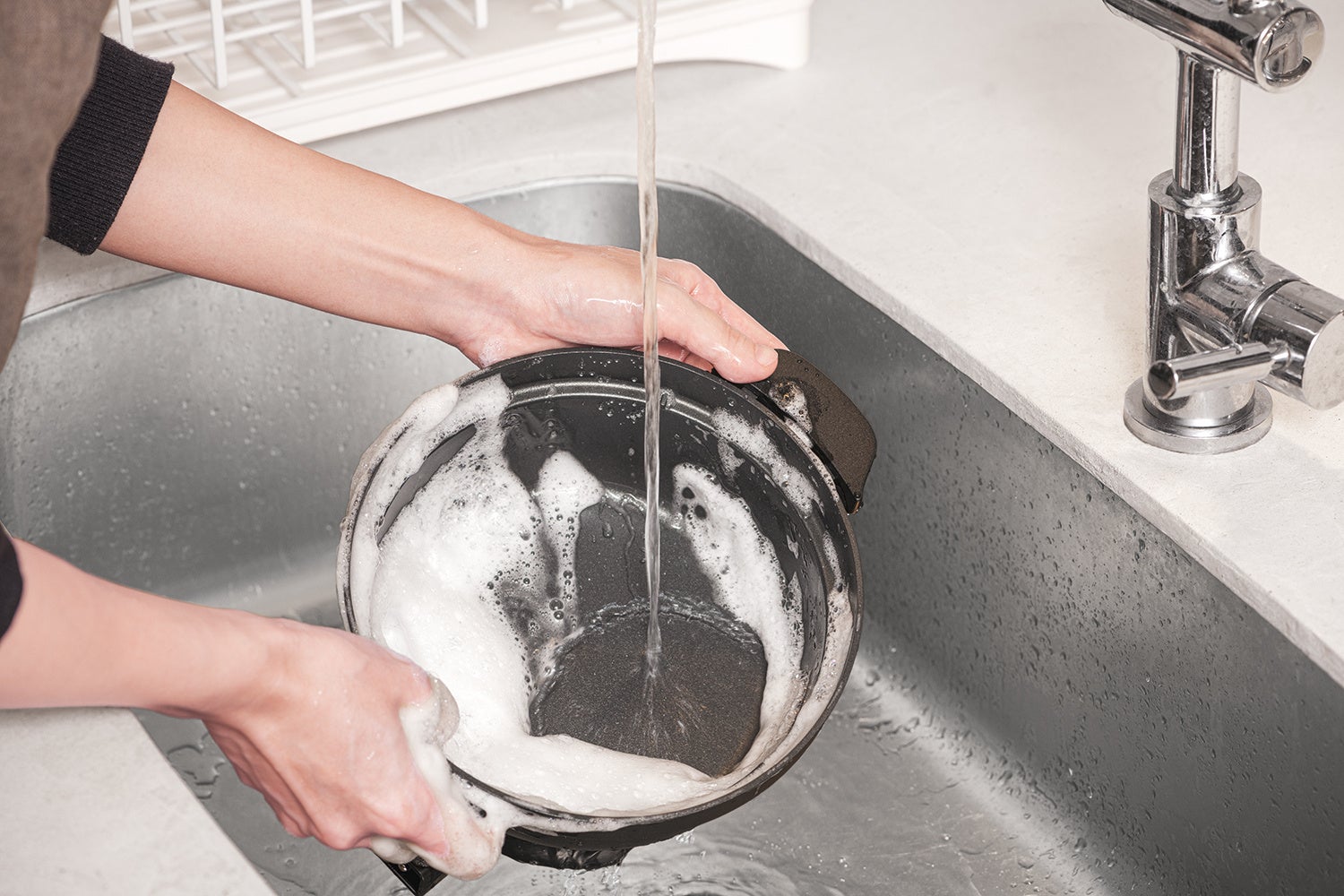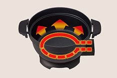 火力は欲しいけれど、できるだけ消費電力は抑えたいもの。 [コポット]は、直径20センチのコンパクトながら最高温度240℃!なのに、低消費電力の500W!秘密は、鍋自体に熱源(ヒーター)を内蔵しているため、熱がダイレクトに鍋に伝わるから。効率良く加熱して、消費電力を抑えます。毎日使ってほしいからこそ、気がかりな点を解消しました。