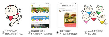 ・5人で励まし合いながら楽しく続けるデジタル・ピア(仲間)サポートアプリ
