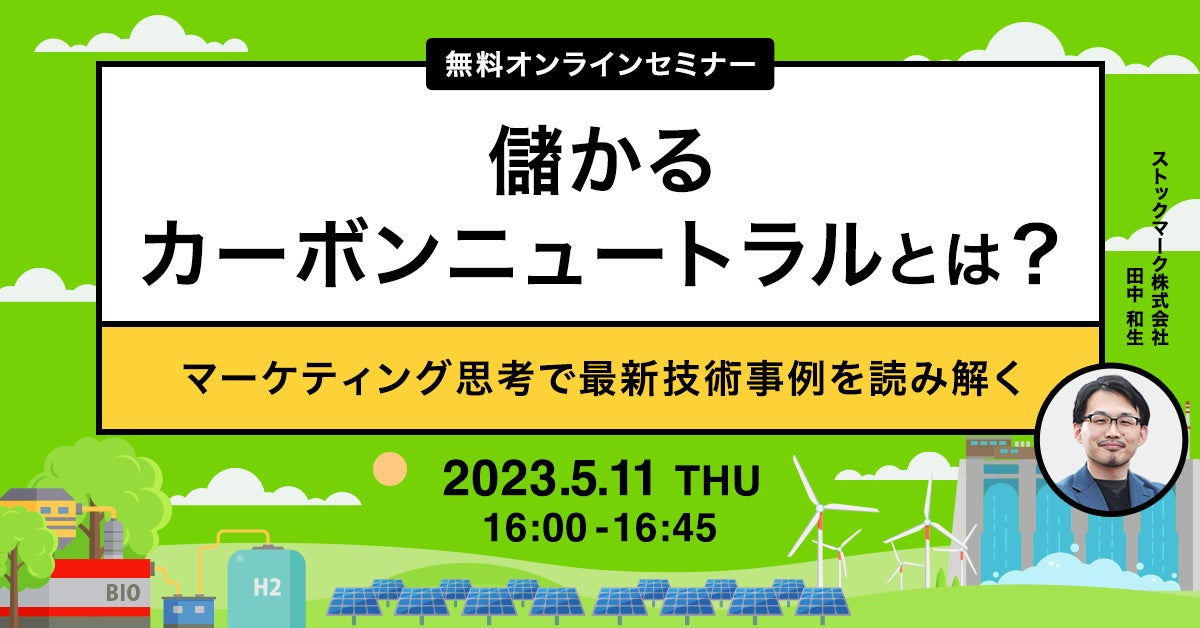 【5月11日(木) 無料セミナー】『儲かるカーボンニュートラルとは?マーケティング思考で最新技術事例を読み解く』を開催(ストックマーク主催)