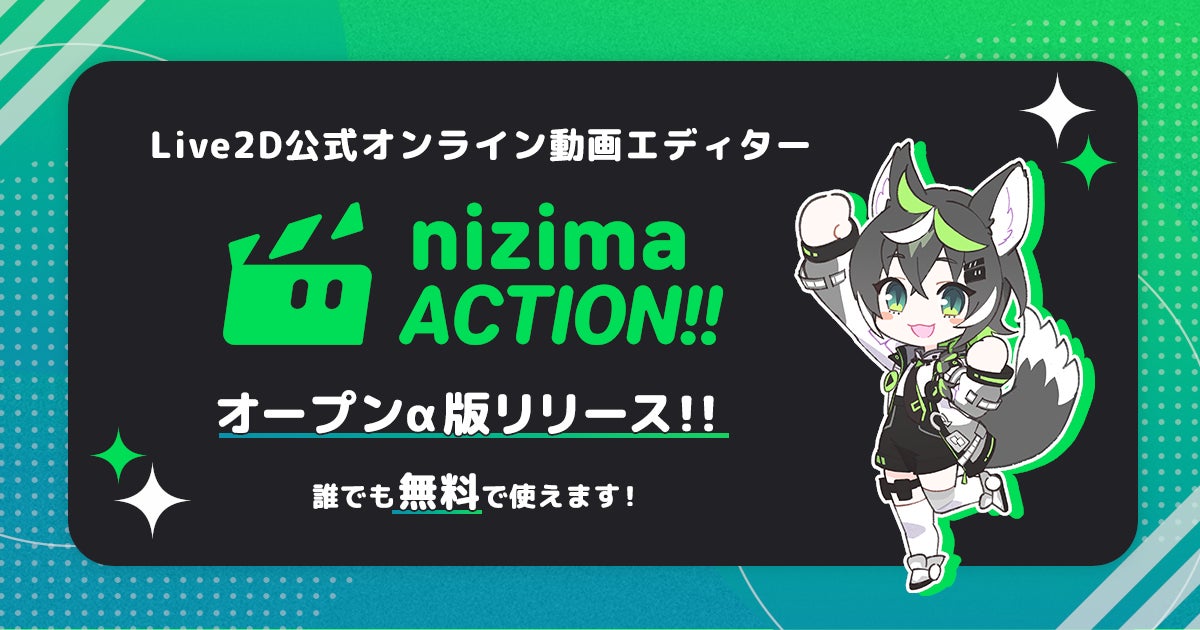 2Dイラストに立体的なアニメーションを加える表現技術「Live2D」の開発を行う株式会社Live2D(本社:東京都新宿区、代表取締役:中城哲也、以下、Live2D社)は、2024年12月10日(火)からLive2Dを使って気軽にリッチな動画編集ができるオンライン動画エディター「nizima ACTION!! オープンα版」の提供を開始しました。