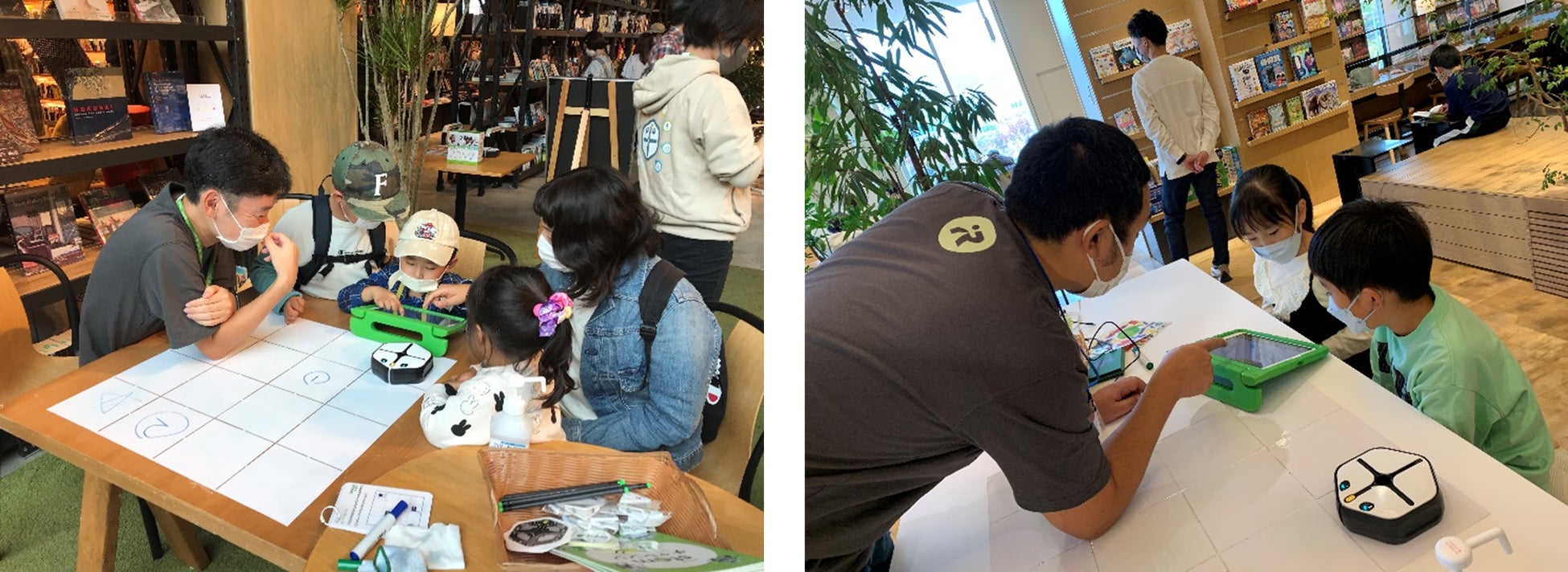 昨年は全国7か所の蔦屋書店・T-SITEにて、「STEM体験キャラバン プログラミングDAY」を開催し、のべ約500名を動員。2歳児から80代のシニアご夫婦まで、多くの人がRootでミッションにチャレンジし、プログラミングの楽しさを体感いただきました。今年も東京オフィスを飛び出し、広島、福岡、東京、北海道、宮城、千葉、大阪にある全国7か所の蔦屋書店・T-SITEにて、STEMプログラムを担当するボランティア社員のレクチャーのもと、同様のプログラムを展開してまいります。