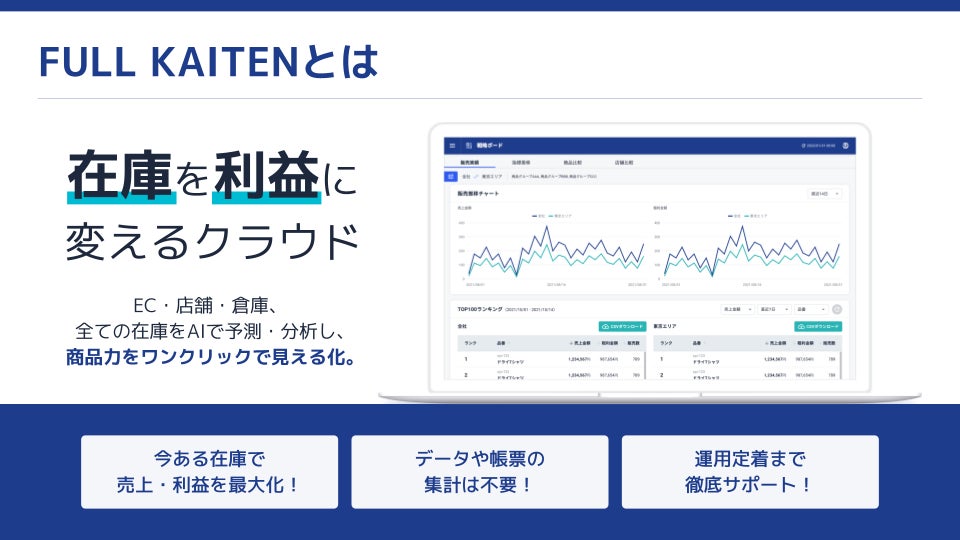 小売業の在庫改善という古くからの重要な経営課題に対して、FULL KAITENはAIを活用した新しいアプローチでソリューションを提供しています。導入企業ではFULL KAITENによって細かな販売施策の打ち分けが可能となり、売上・粗利の改善、在庫の減少を同時に実現しています。また、個社の在庫改善という課題だけでなく、在庫適正化を通じてアパレル等の大量廃棄問題という地球規模の課題解決に資するプロダクトだと考えています。