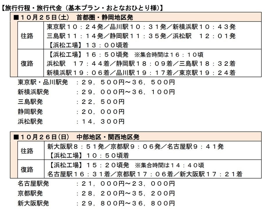 ※浜松工場へは、団体専用列車で直接入場します。当日現地にお越しいただいても浜松工場にはご入場いただけません。