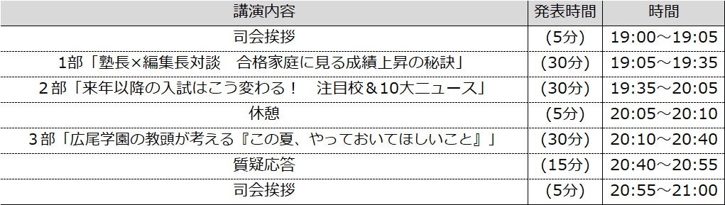 1部のテーマは、「塾長×編集長対談 合格家庭に見る成績上昇の秘訣」