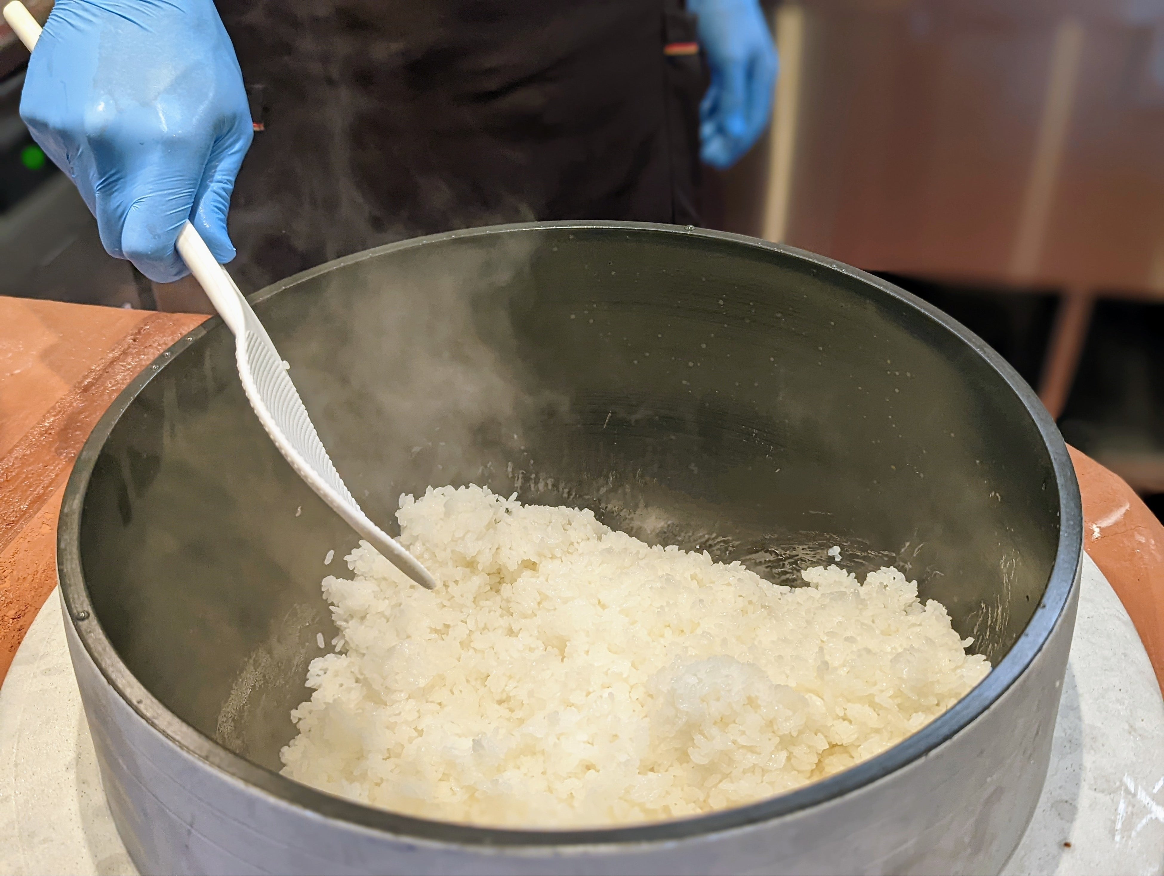 【こだわり3】お肉のお供、お米にもこだわりが!ふっくらツヤツヤな魚沼産コシヒカリ大かまどごはん