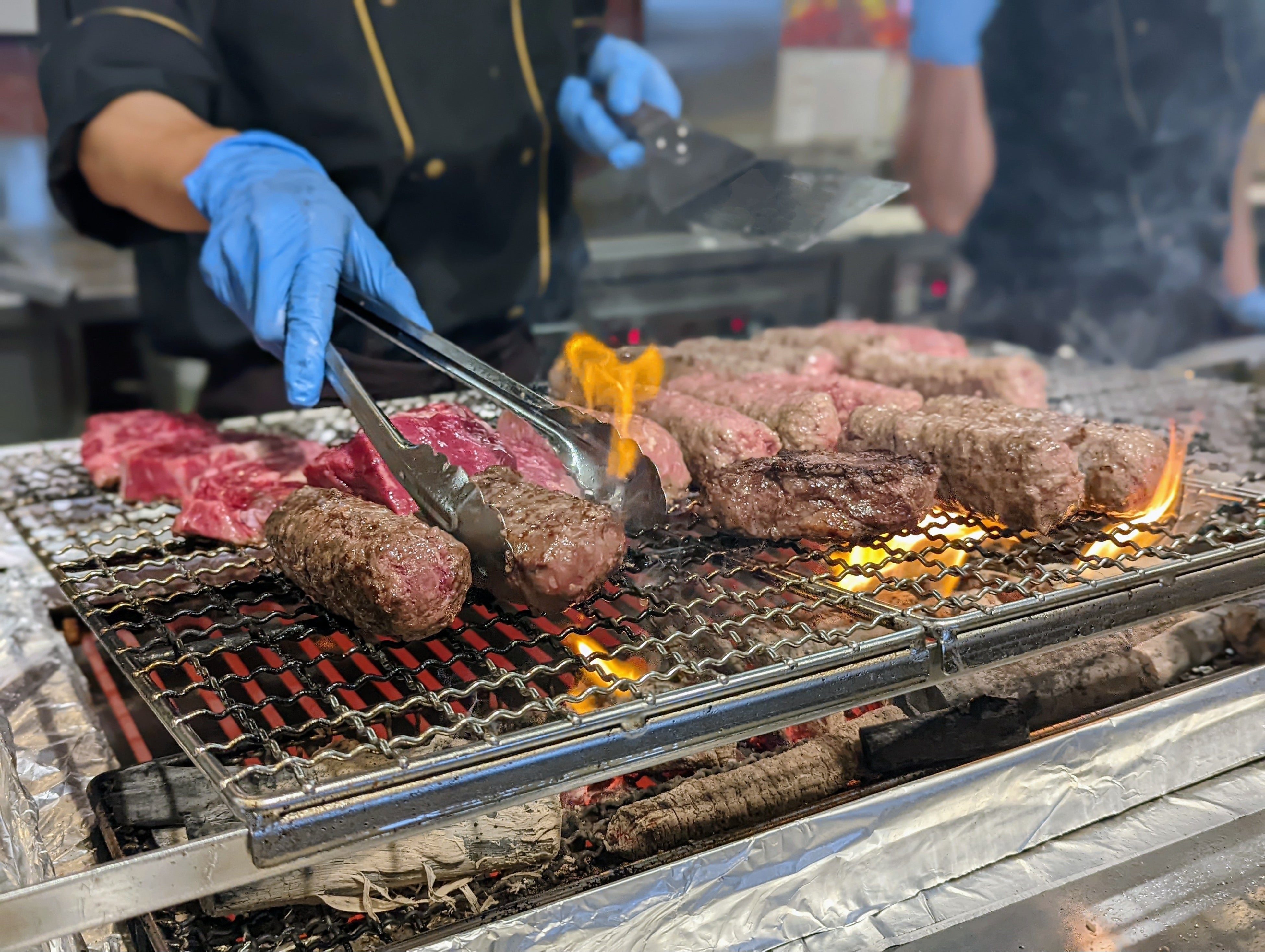 また、ステーキ部門の人気No.1は、赤身とサシのバランスがよく、こだわりの炭焼きでジューシーに焼き上げられた『炭焼き極選リブロースステーキ』です。他にも、開発に10年を費やした『炭焼き黒毛和牛ハンバーグ』は、黒毛和牛の脂の甘みと、赤身の濃い味わいの和牛を組み合わせることで、和牛の繊細な味わいをお楽しみいただけます。