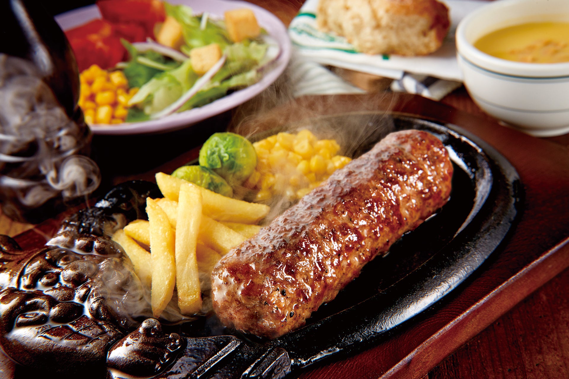厚切りでジューシーなステーキ&ハンバーグ、シャキシャキで新鮮なサラダバーと年6回変わる季節限定惣菜サラダ、大かまどで炊くふっくらツヤツヤな魚沼産コシヒカリが大人気!