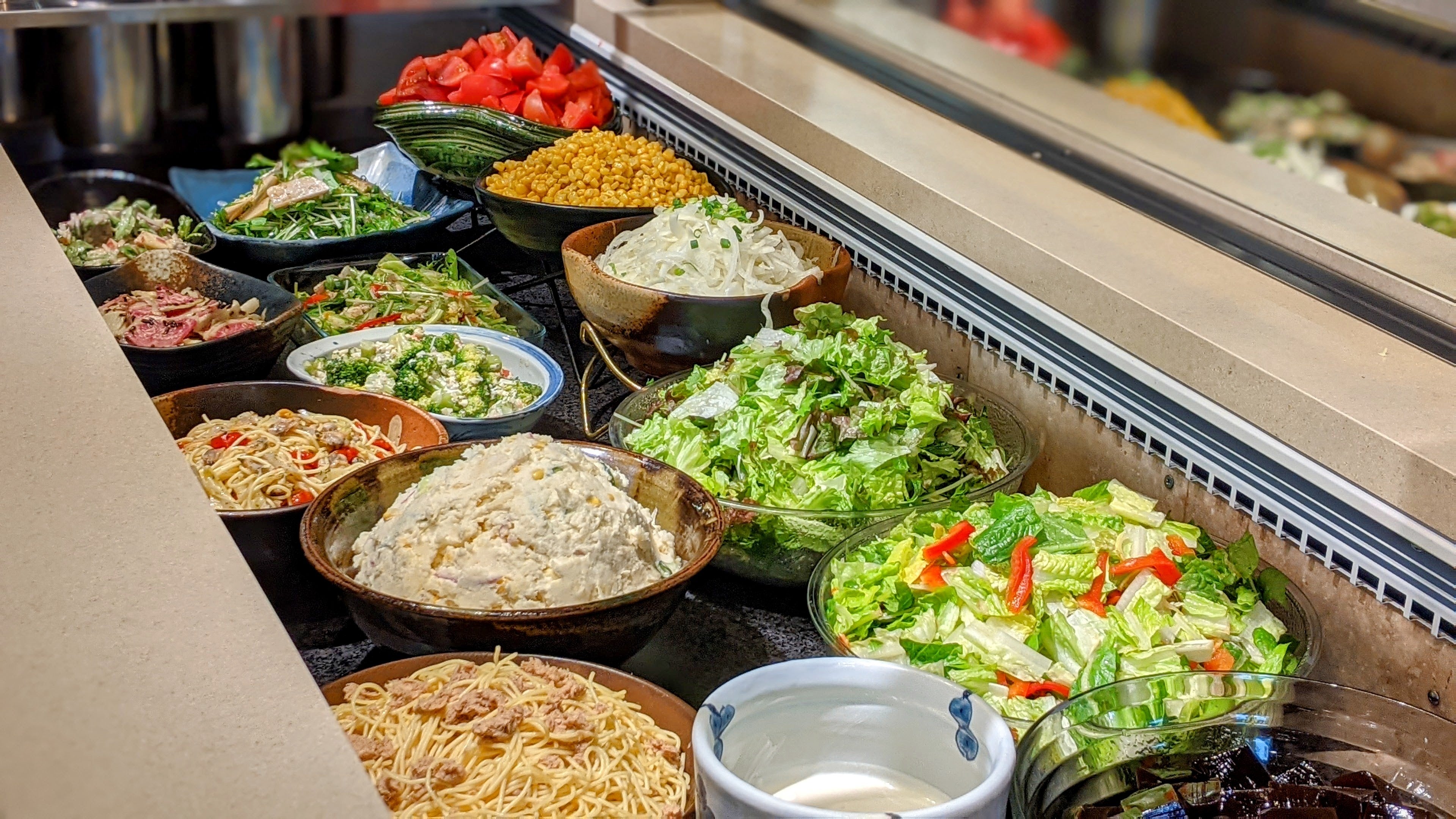 【こだわり2】各店舗でカット・調理!シャキシャキで新鮮なサラダバー&季節に合わせた惣菜メニュー