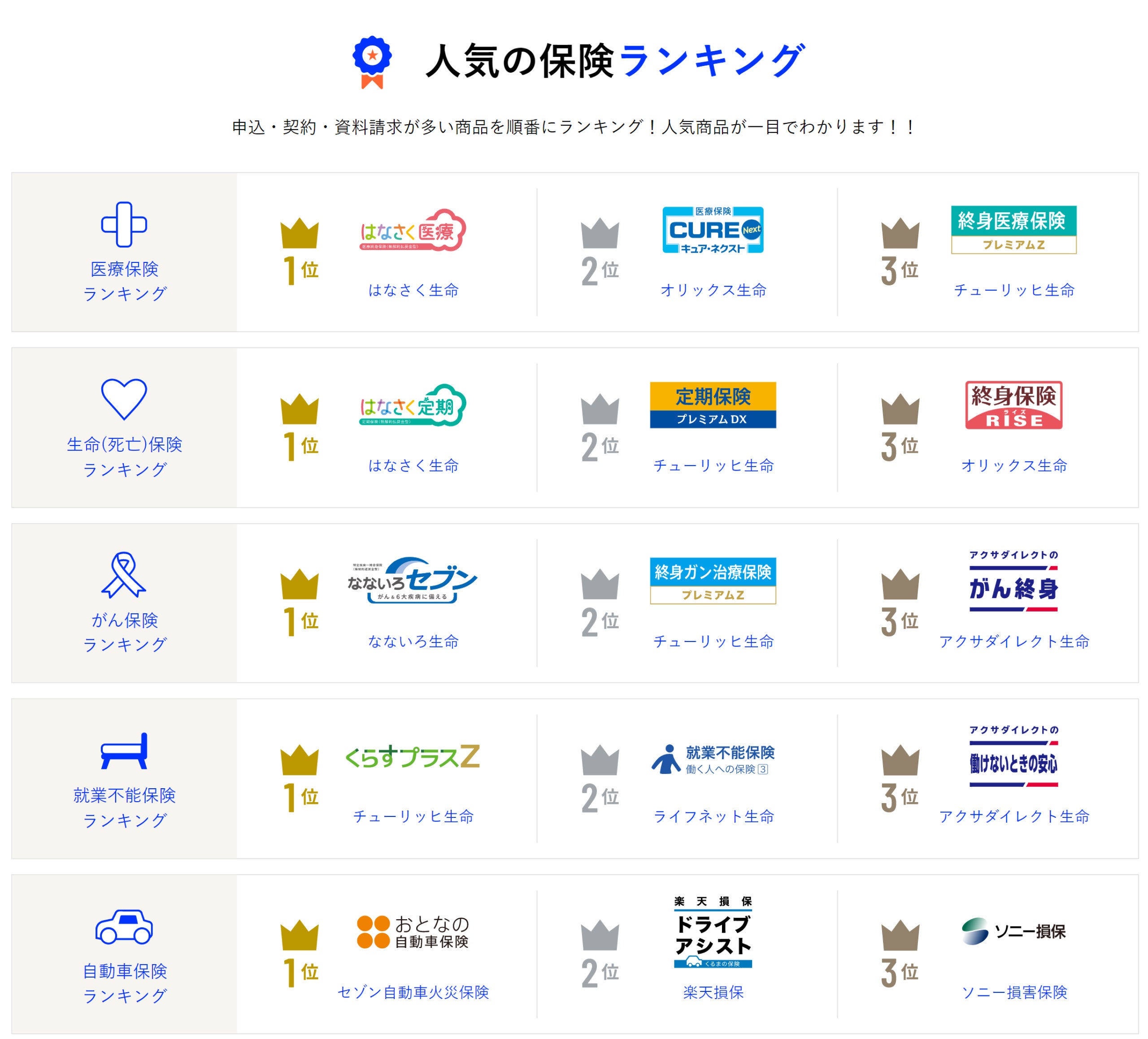 ■2023年4月版 人気の保険ランキング