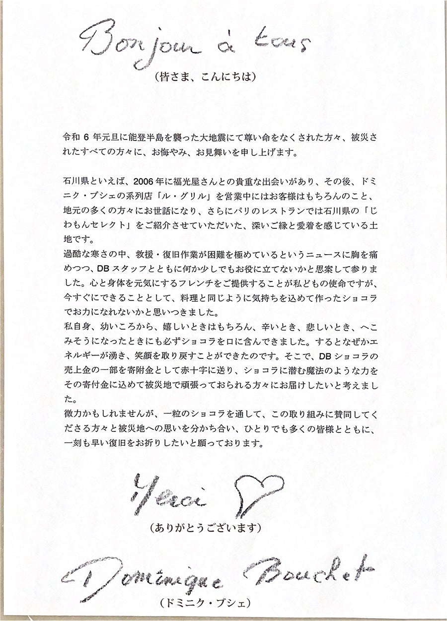 売上金の一部を令和6年 能登半島地震の被災者義援金とさせていただきます