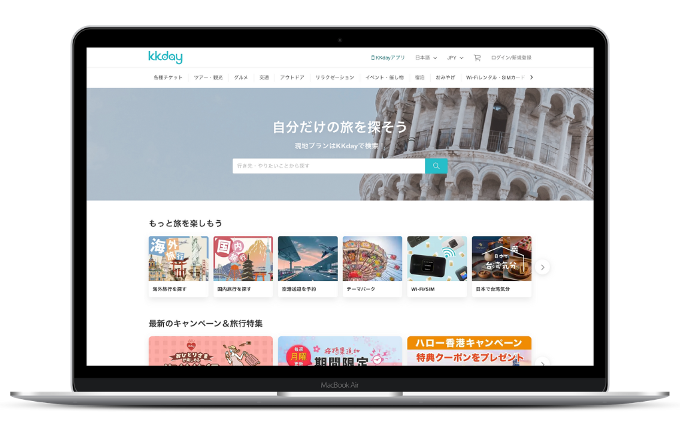 KKdayのプラットフォームは、92ヵ国550都市以上をカバーし、約30万件を超える旅行商品を取り扱っています。世界中の利用者がもっと自由で快適に旅行体験を楽しめるよう、サイトは繁体字、簡体字、英語、日本語、韓国語などの多言語に対応しています。KKdayは旅行者に素晴らしい旅を届けるというコンセプトのもと、今後も高品質なオプショナルツアー・現地アクティビティを提供してまいります。
