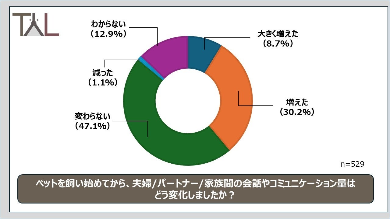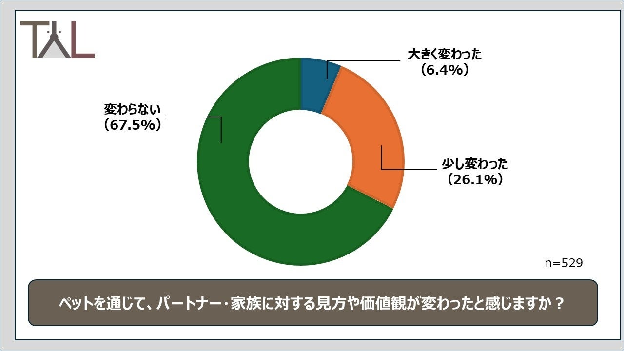 TYLでは、ペットが健康に暮らせる環境をつくり、ペットと飼い主ともに「幸せな生活」を送れるように「ペットの医療DX」を進めており、首都圏にて5店舗の動物病院の運営および往診サービスを提供しております。今回の調査は11月22日「いい夫婦の日」にちなみ、ペットの飼い主529名にペットが夫婦・パートナー・家族に与えた影響についての意識調査を実施しました。ペットも飼い主も、お互いに健康で幸せな暮らしができることを願っております。