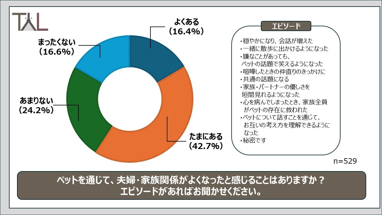 ・「家族の関係がよくなった」と感じる飼い主は6割近く。ペットが夫婦・パートナー・家族の関係をつなぐ存在に。