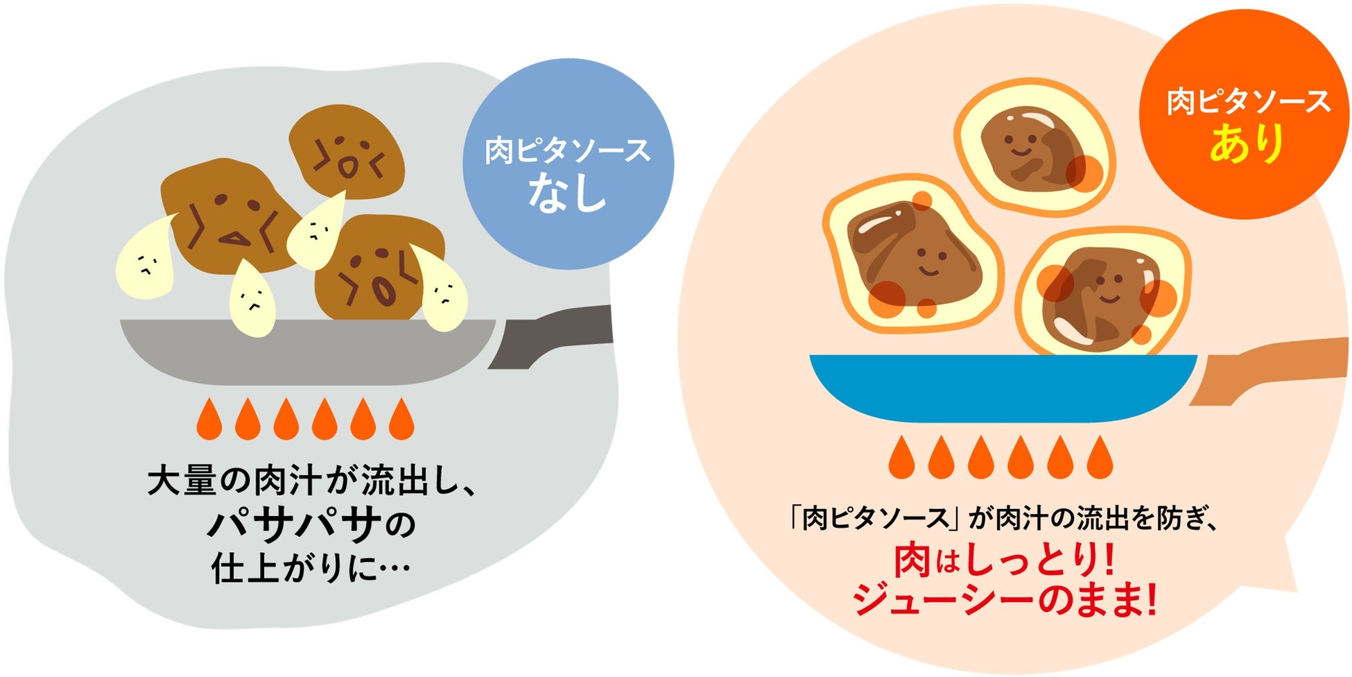 ・当社の特許技術を使った「肉ピタソース」で 肉の水分を逃さずにやわらかく焼ける!