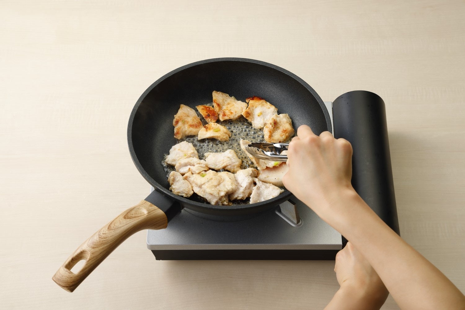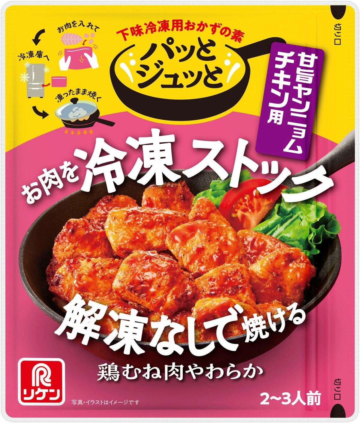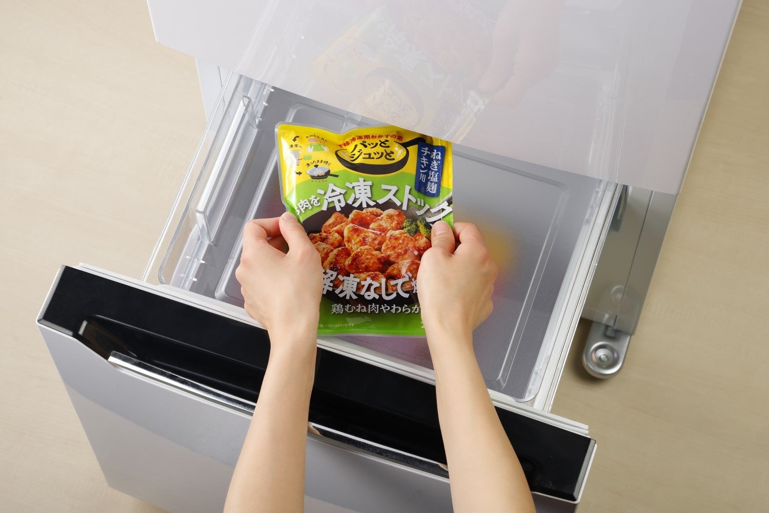 そこで、20~40代の共働き子育て世帯をターゲットに、パサつきがちな鶏むね肉でもジューシーに焼ける、解凍要らずの下味冷凍用おかずの素を開発しました。時間に余裕がある日に切った肉を入れて冷凍ストックしておき、食べたい日は解凍せずフライパン1つで簡単におかずができる商品です。
