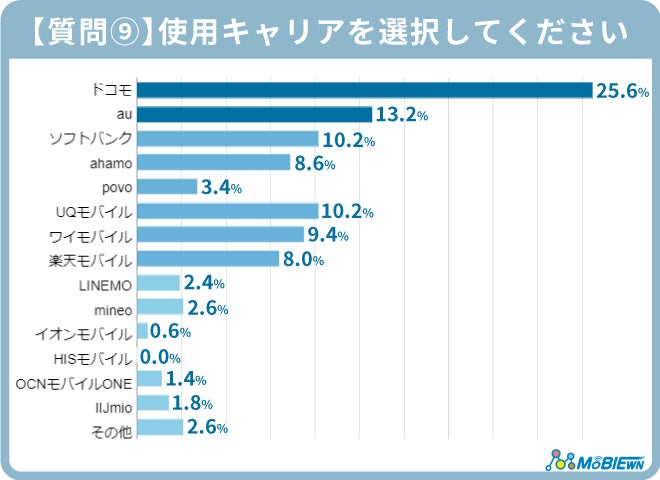 使用キャリアは「ドコモ」が25.6%で最多