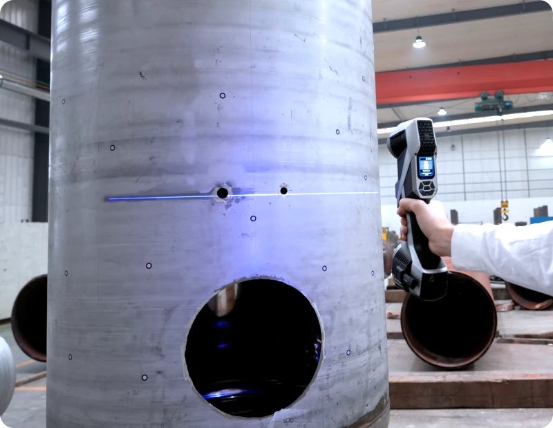 KSCAN-Xは、同様の製品と比較してよりコンパクトで軽量な設計を採用しています。 短いベースラインと深部専用のブルーレーザーを搭載し、パイプ内部やギアの歯などのアクセスしにくい場所も正確に捉えます。 これにより、複雑で難易度の高い箇所でも、高精度なデータ収集が可能です。