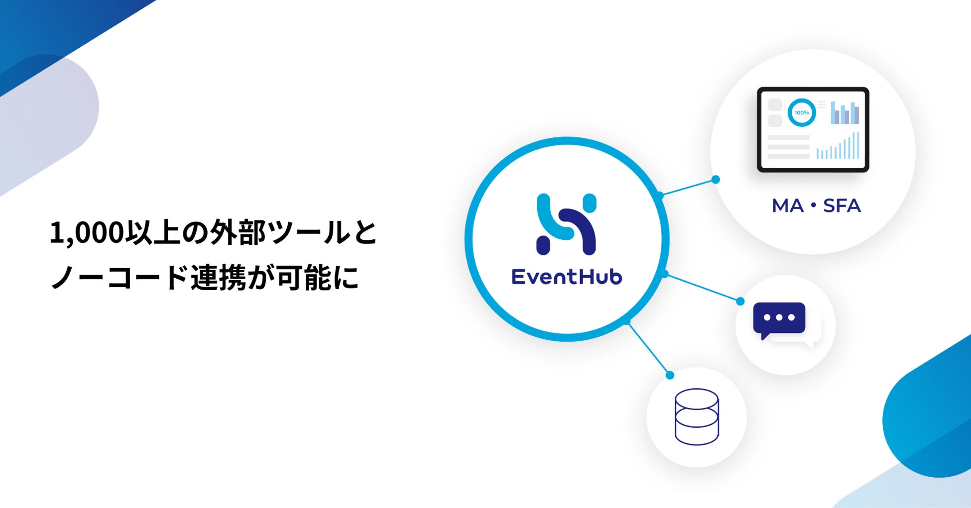 株式会社EventHub (東京都港区、代表取締役CEO:山本 理恵) が提供するシェアNo.1(※)イベント・ウェビナーマーケティングプラットフォーム「EventHub(イベントハブ)」は、ノーコード連携機能の提供を開始いたします。