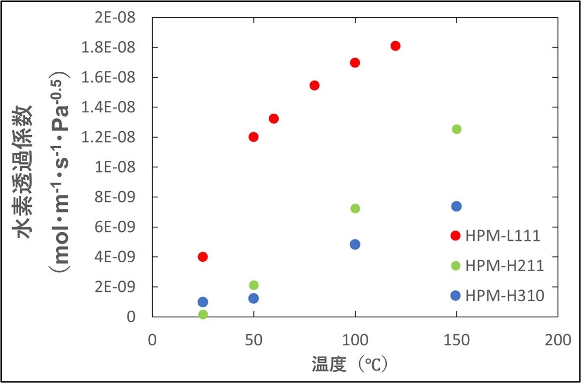 100℃前後の低温領域で高い水素透過性能を発揮する