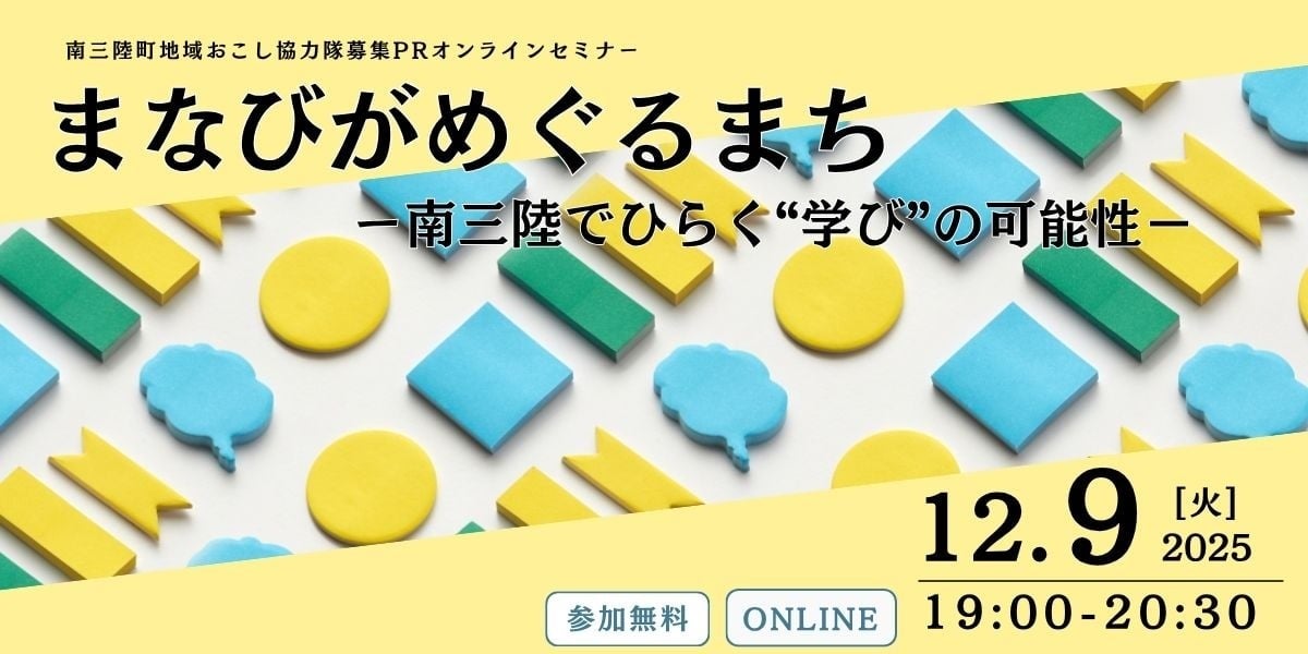 2025年12月9日(火)よりオンラインにて「南三陸町 地域おこし協力隊募集セミナー まなびがめぐるまち─南三陸でひらく"学び"の可能性─」の開催が決定しました。