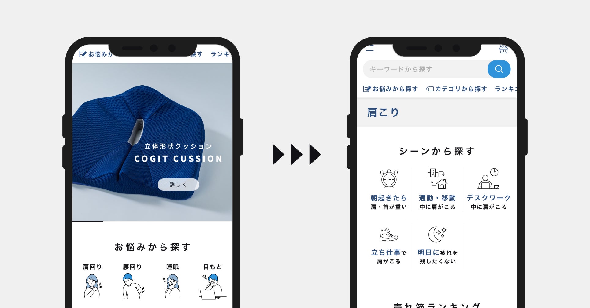 KENCOCOは健康領域に特化し、お客様それぞれの悩みや課題を深掘りしていくことで、ご自身に最適な製品が購入できるプラットフォームになっています。一般的なECモールにある大量の製品からご自身の判断で選ぶというストレスから解放され、スムーズな形で健康課題解決の製品を提案します。
