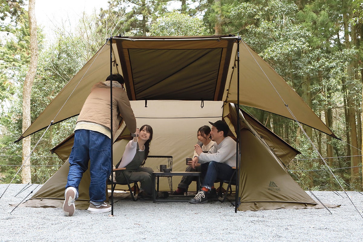 ~高い天井と広々リビングで、開放感と快適性を演出した、ソロ・デュオ向けテント~