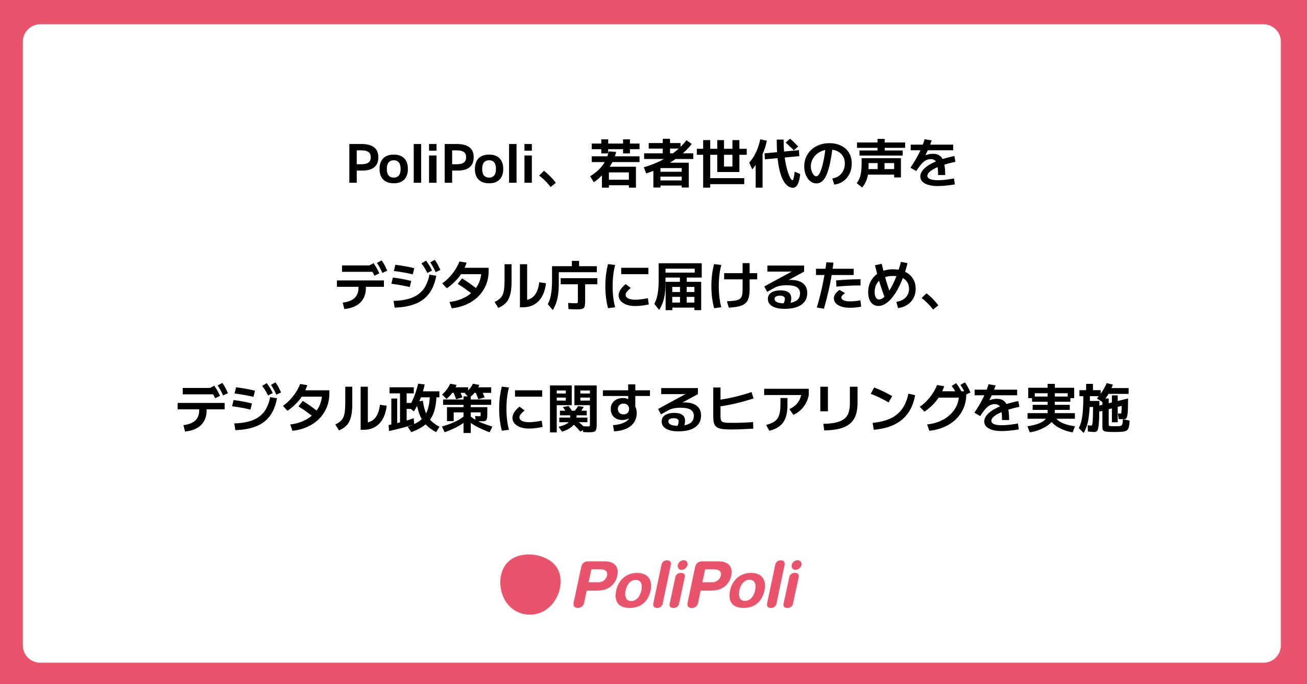 株式会社PoliPoli(所在地:東京都千代田区、代表取締役:伊藤和真、以下 PoliPoli)は、デジタル政策に関するヒアリングの参加者を募集し、若者世代の声をデジタル庁に届ける取り組みを行うことをお知らせします。