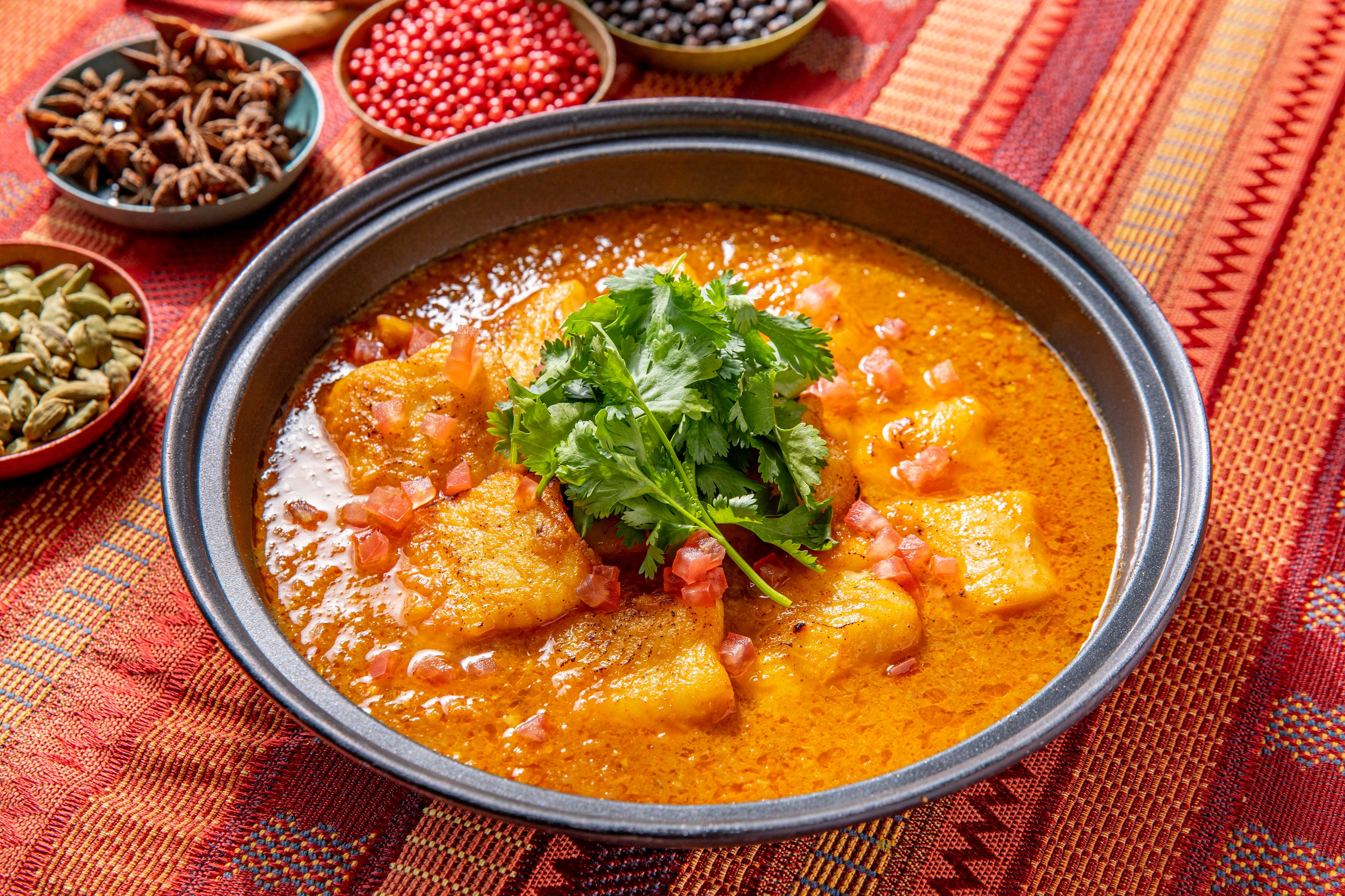 食後にはシェフの遊び心がユニークなひねりを効かせたスパイスアイスクリームやスムージー、フルーツタルトなどをご賞味いただけます。マンゴーにカルダモン、シナモン、ナツメグ、そしてほんのりターメリックを効かせた「スパイシー・マンゴーアイスクリーム」を始め、「トマトとパプリカの赤トウガラシ入りアイスクリーム」、「アボカド&パクチー・ミントアイスクリーム」などのオリジナルアイスクリームは、そのまま食べても、カレーに合わせても不思議と合う美味しさです。