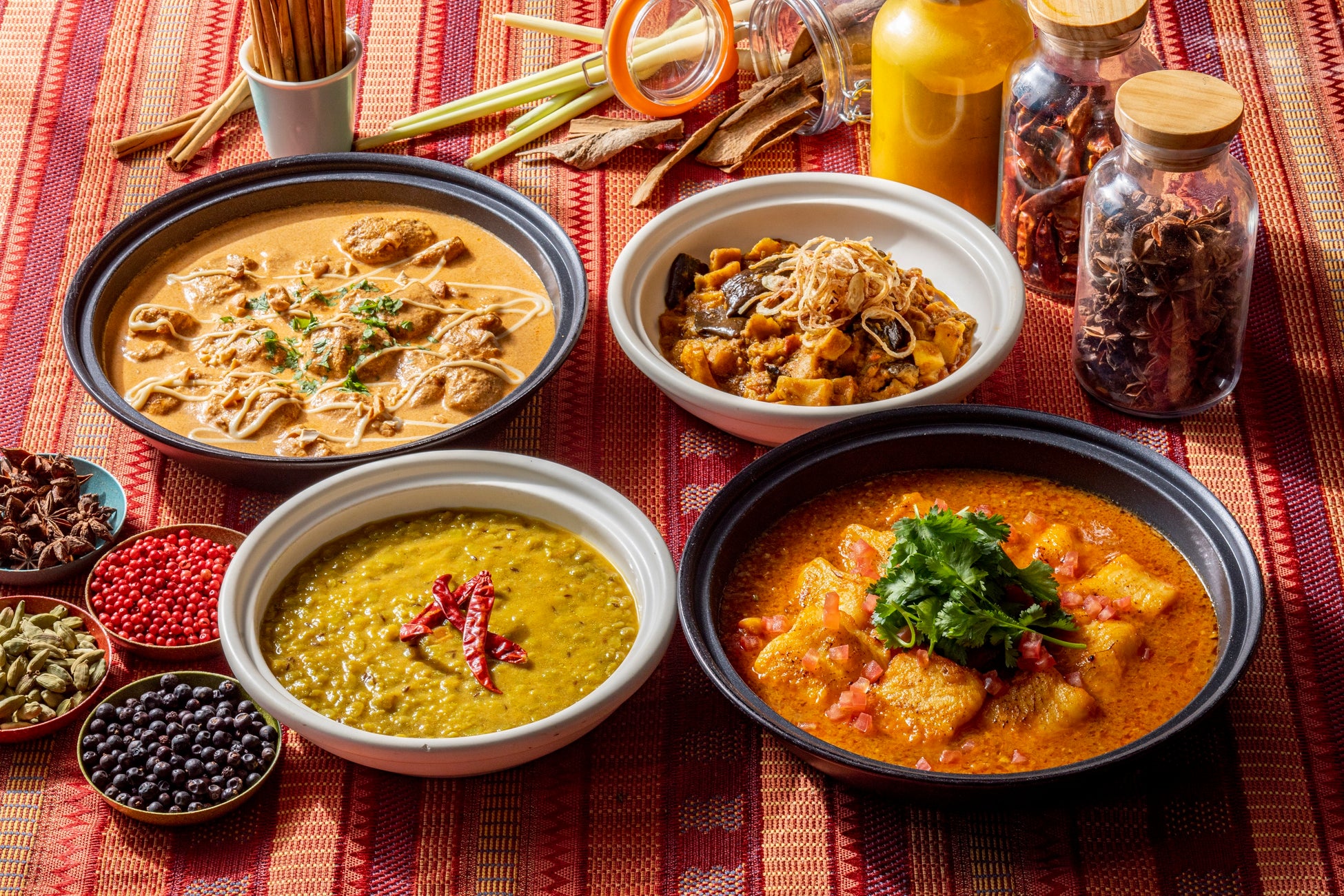 食欲減退気味の夏のランチタイムをスパイシーなカレーで美味しく刺激しませんか?4種類ご用意するカレーは、シェフがひねりを効かせた他では味わえない品々です。トマトとヨーグルト、各種スパイスで骨付きチキンを煮込み、バターとクリームをたっぷり使用した人気の「バターチキンカレー」は、隠し味にカシューナッツピューレを加え、よりマイルドでコクのある味わいに仕上げました。茄子とジャガイモのカレー「アルーバインガン」は、ガーリック、ジンジャー、グリーンチリ、クミンシード、コリアンダーパウダーなど、多彩なスパイスが複雑に絡み合うセミドライカレー。辛さを調整しつつ、フレッシュな味わいも楽しめるようトマトやオクラ、パプリカなどの夏野菜をトッピングしました。たんぱく質が豊富で、栄養価も高いと言われる緑豆を用いた「ムングダールカレー」はたっぷりのスパイスを用いながらも、マイルドで優しい味わいです。カレーのつなぎにスーパーフード、チアシードを用いたシェフのひねり技にも注目です。白身魚をターメリックオイルでマリネした後に焼き上げるひと手間を加えた「マサラフィッシュカレー」は、辛味が効いたスープカレーです。ココナッツミルクを合わせる事により、クリーミーな味わいに仕上げました。