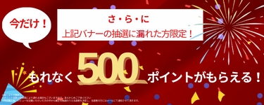 500ポイントはダブルチャンスとして、上記の抽選に漏れた方から先着でもれなく全員にプレゼントいたします。