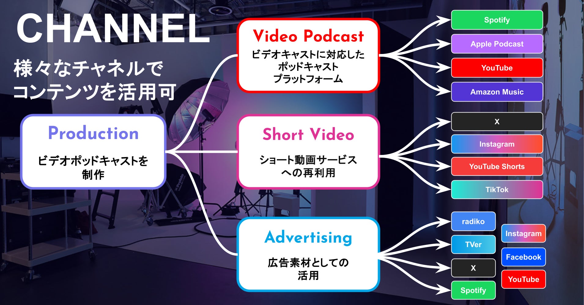 音声コンテンツの「ながら視聴」のしやすさや、人間性が伝わりやすいという強みと、動画ならではの汎用性やリーチを最大化しやすい強みを合わせることで、企業の採用活動や広報活動を強力に支援し、新しい広告体験を実現するとともに、ポッドキャストメディアの新たな価値創出を目指します。