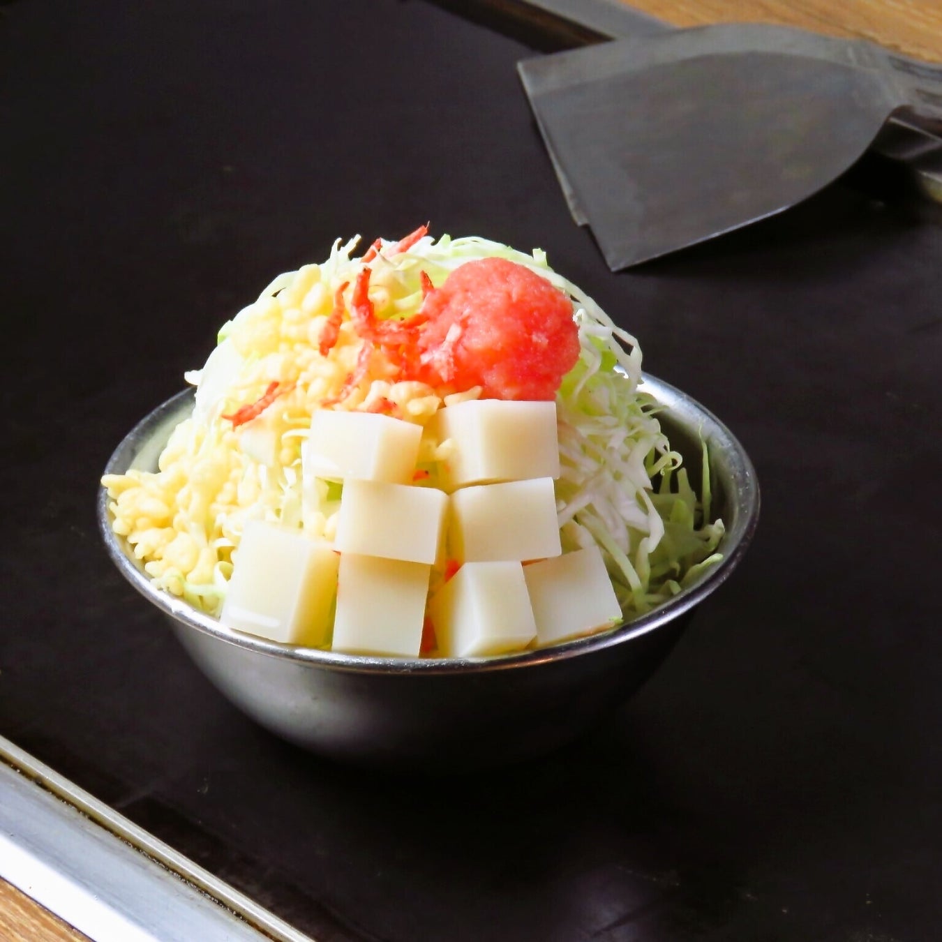 ・明太餅もんじゃ - 明太子の塩気とお餅の柔らかさが絶妙なバランスを生み出す人気メニュー。
