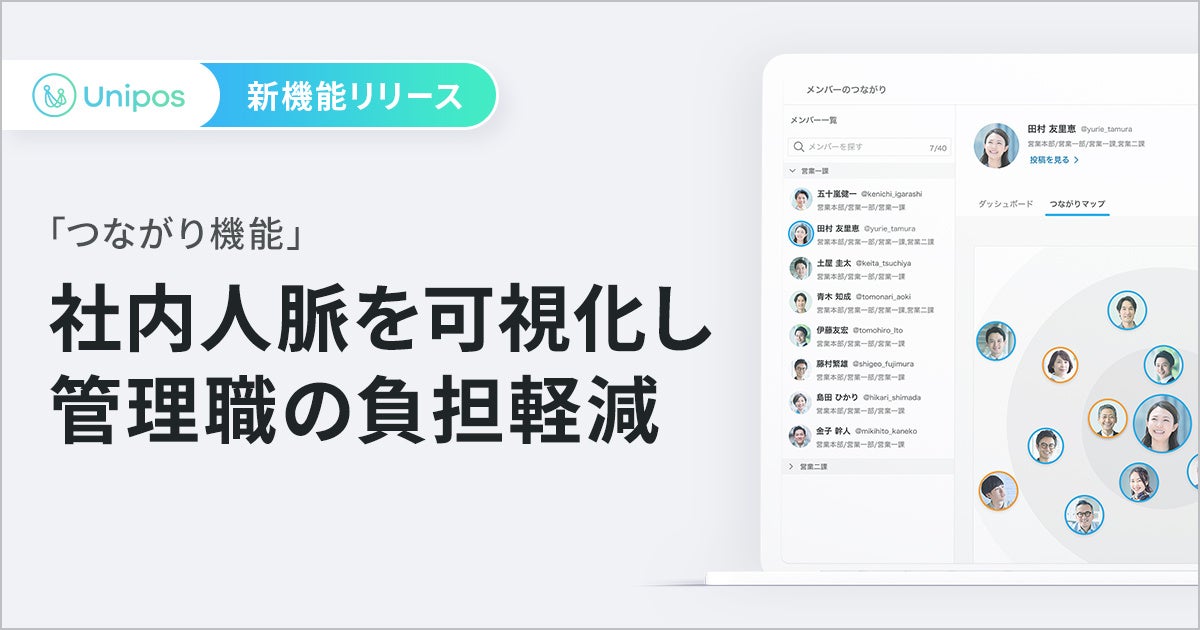 Uniposが新機能「つながり機能」をリリース 今まで目に見えなかった社内のネットワークを可視化することで 管理職の負担軽減と社内人脈の強化を実現