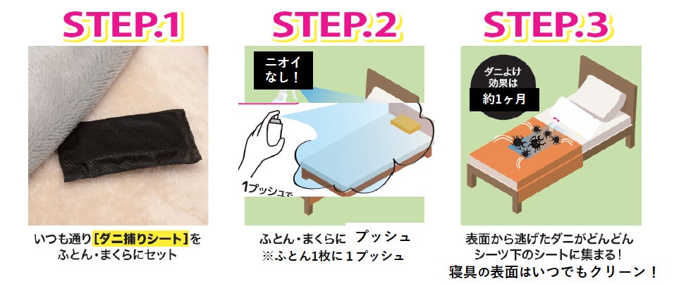 【好評につき取扱店舗拡大】新時代のダニ対策「さよならダニースプレーワンプッシュ式」