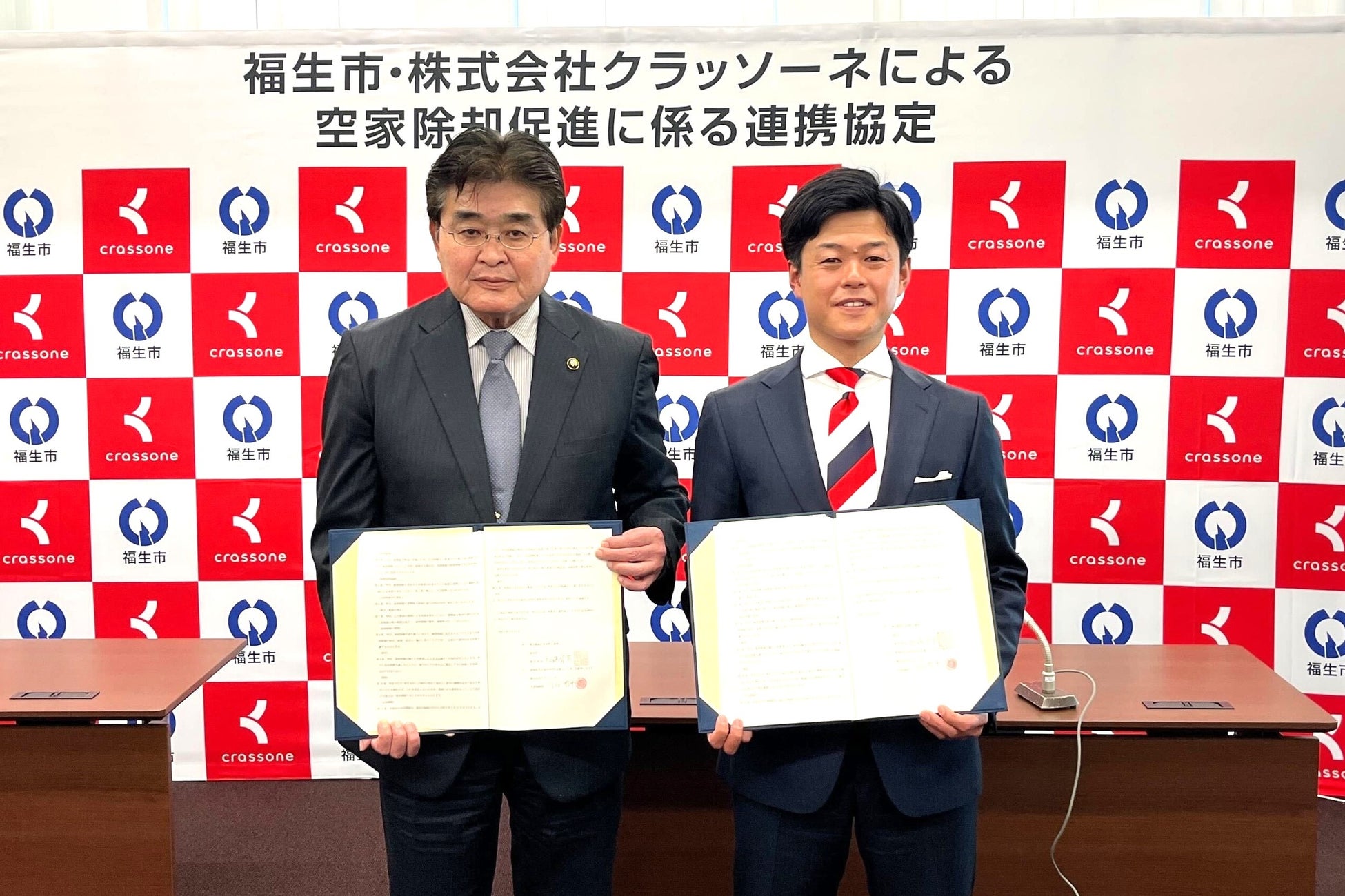 【都内初、建設テックのクラッソーネが福生市と空家除却(解体)促進に係る連携協定を締結】管理不全空き家の除却促進により、市民の安全・安心な生活を守るまちづくりを目指す