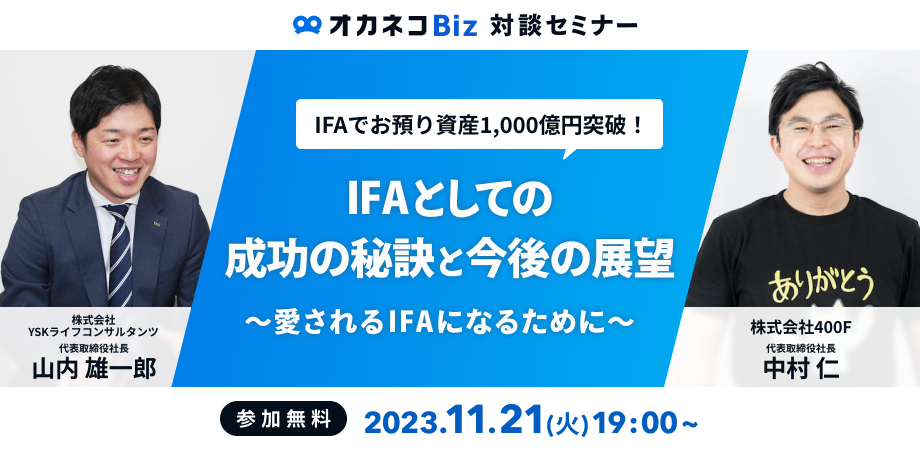 【オカネコBiz対談セミナー】IFAでお預り資産1,000億円突破!IFAとしての成功の秘訣と今後の展望 ~愛されるIFAになるために~