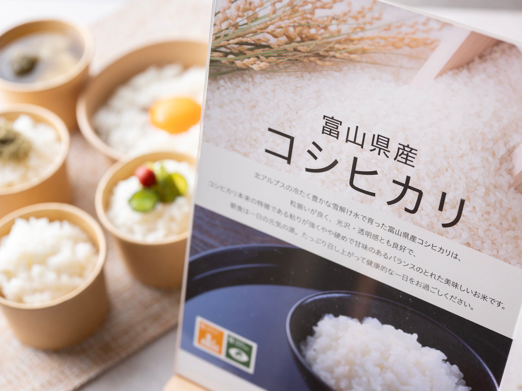 当館では、毎朝6:30~9:00の間、スーパーホテルといえばお馴染みの健康的なオーガニックサラダやホテルでの焼きたてパン、日替わりメニューに加え、富山のご当地メニューとして炊き立ての「富山県産コシヒカリ」、富山アルペン乳業の「とやま牛乳」、カウヒー(コーヒー牛乳)、プレミアヨーグルト、田村農園の新鮮な卵、四十物昆布の上黒とろろなど、富山グルメを地産地消で楽しんでいただけるビュッフェ形式の朝食をご用意しております。