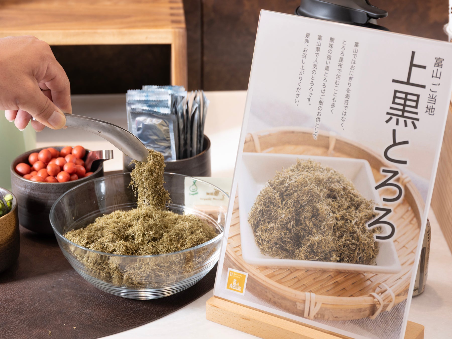 同店では富山県の素晴らしい食材をより多くの方に召し上がっていただきたいという想いから、富山のご当地グルメが楽しめるビュッフェ形式の朝食をご宿泊者の方に無料でご提供します。