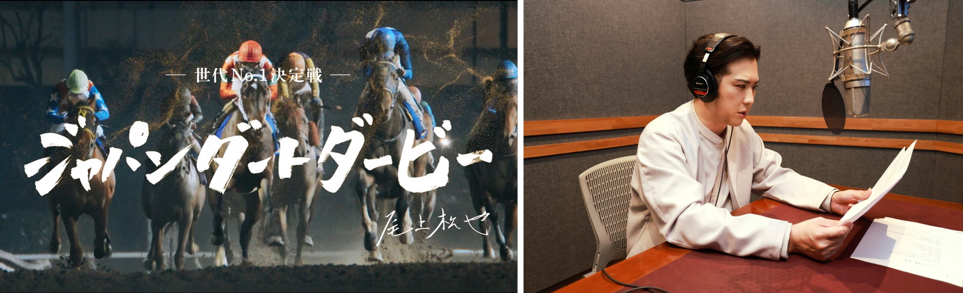 第一弾から引き続き、歌舞伎俳優の尾上松也さんにPRムービーのナレーションを務めていただきます。迫力あるレース映像とともに「ジャパンダートダービー」の見どころを重厚感のある声でアピールし、レースの歴史と重みを感じられるムービーとなっています。