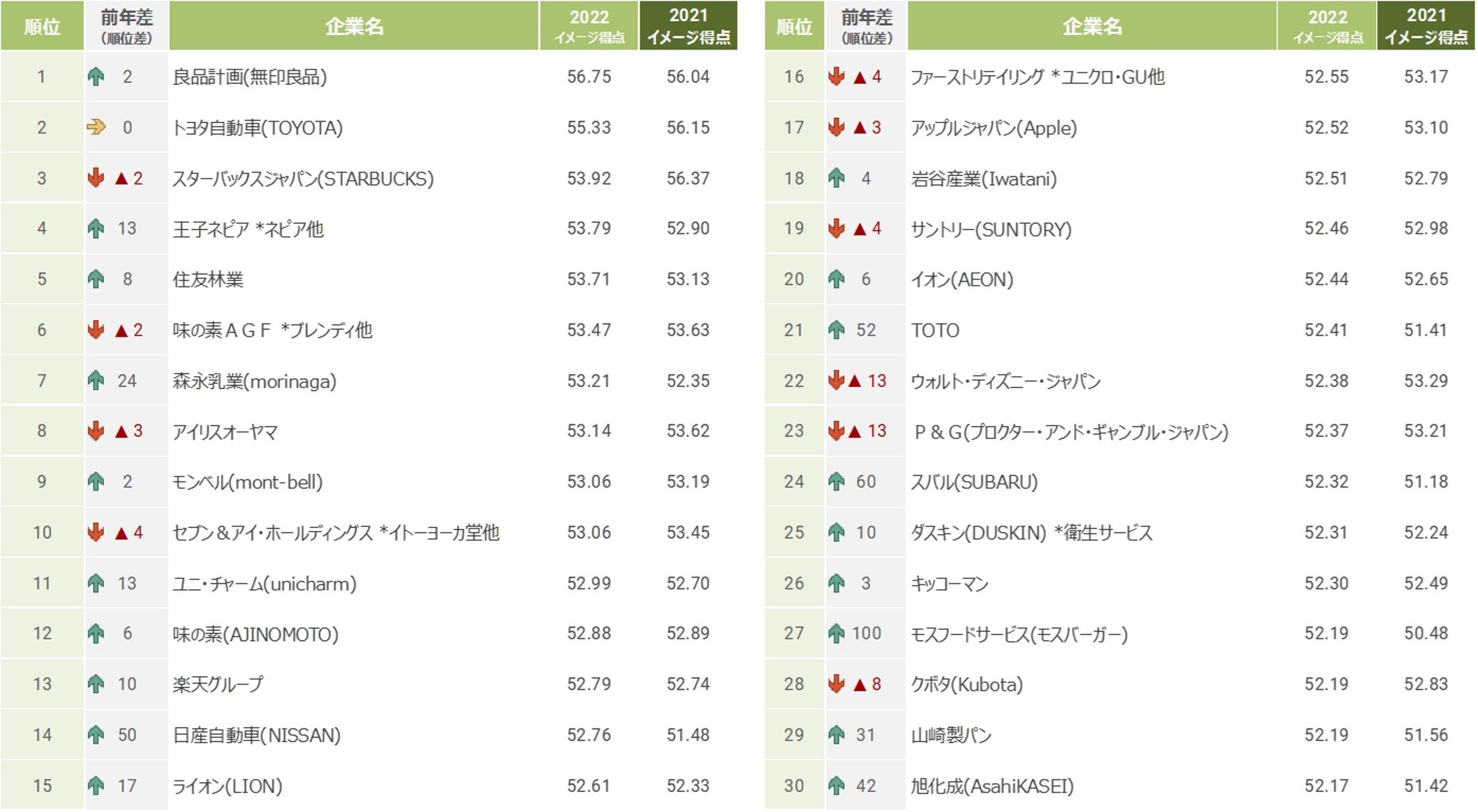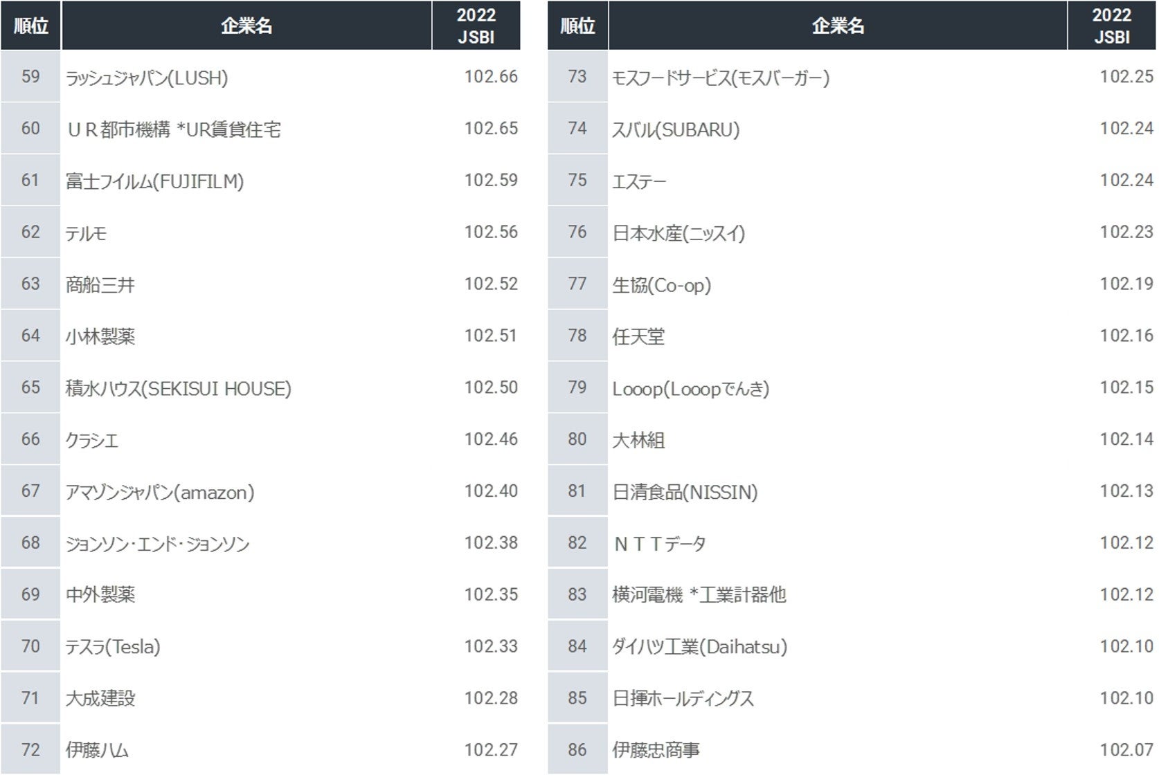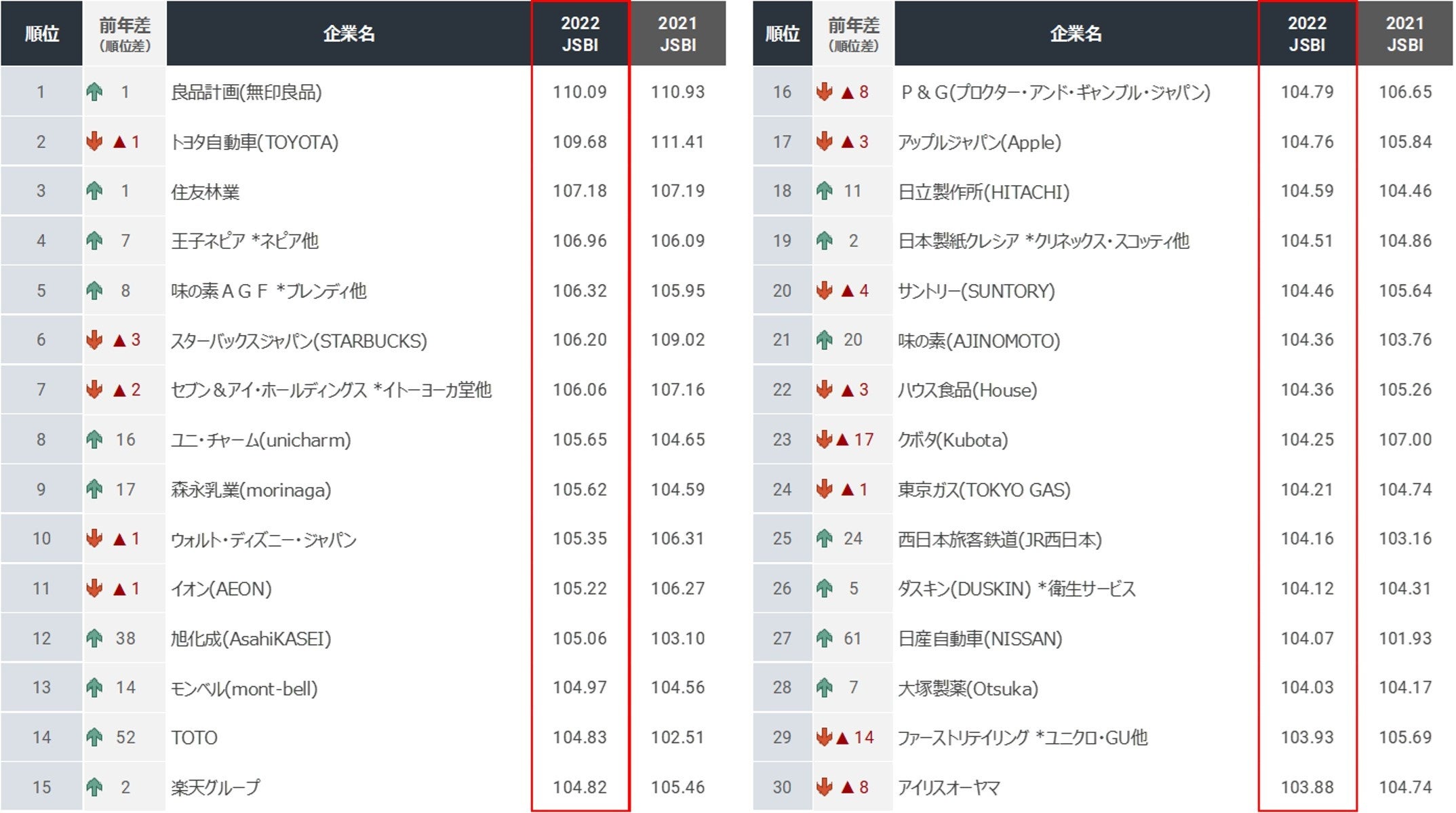 生活者から見たSDGsに貢献する企業ブランド調査『JSBI 2022』、良品計画が初めて1位に。2位トヨタ、3位住友林業。