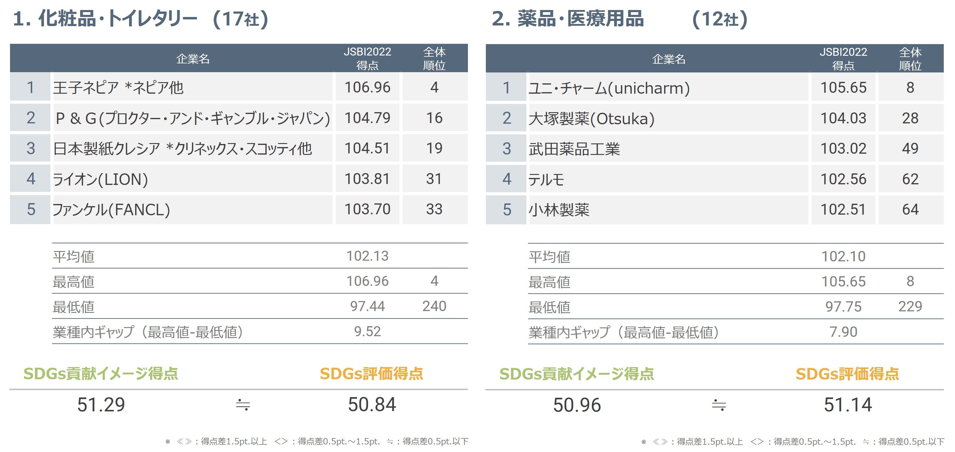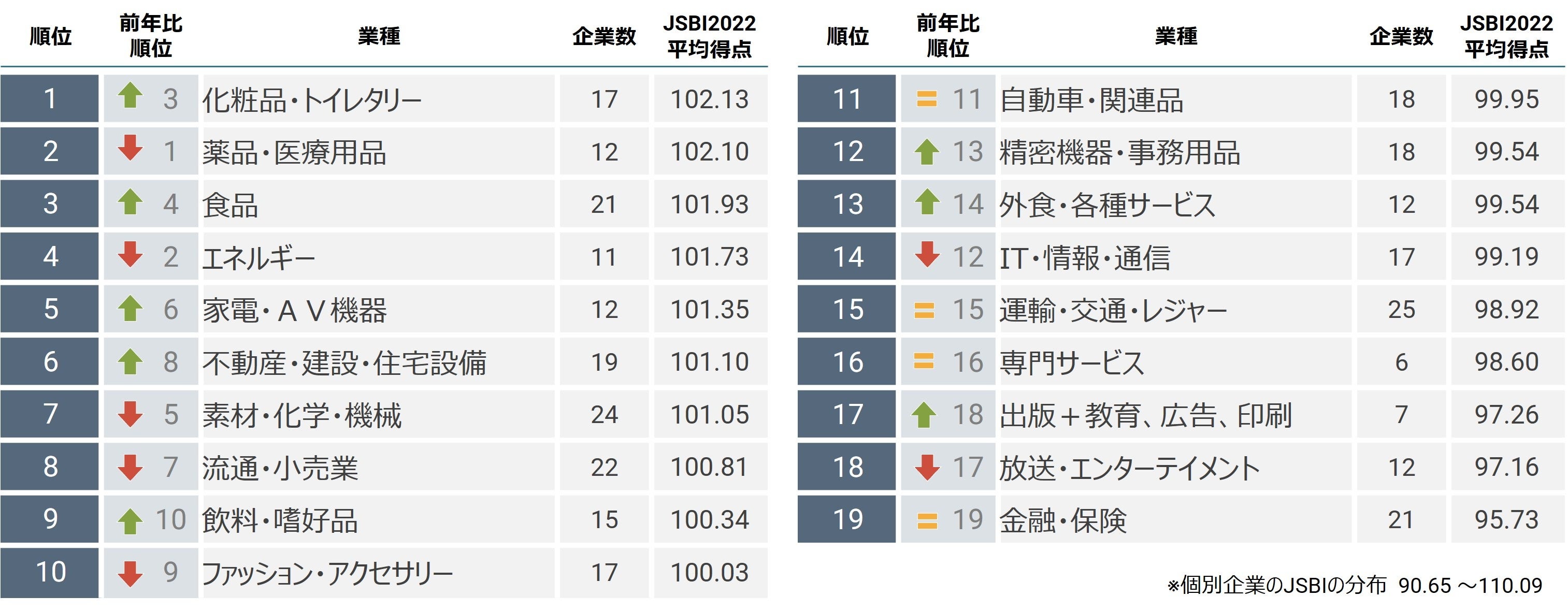 業種別傾向は、「化粧品・トイレタリー」、「薬品・医療用品」、「食品」が高評価。