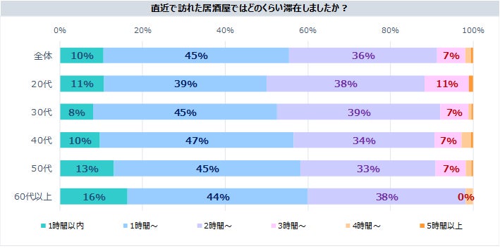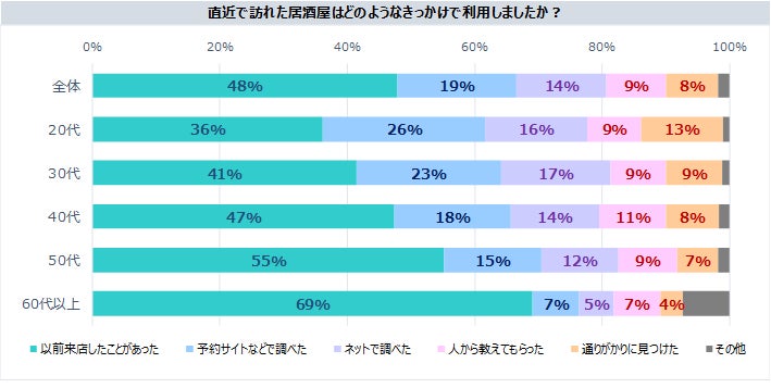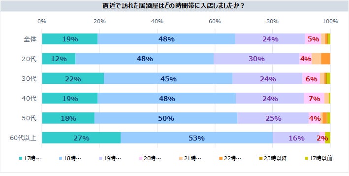 1軒目の居酒屋利用も半年前から利用状況は変わっておらず、以前来店したことのあるお店で18時ごろから友人と2~4名で3時間以内の滞在をしている結果となっています。