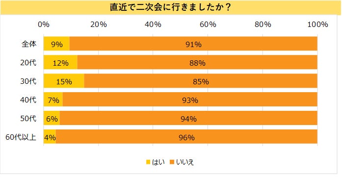 積極的に居酒屋を利用したいものの利用実態は半年前と変化なく、2次会利用は少数